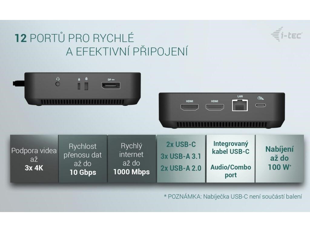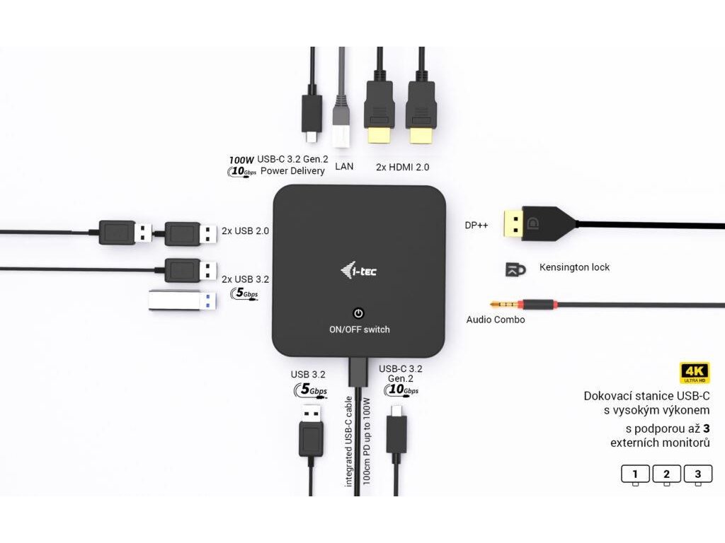 i-tec USB-C DP Dual HDMI Docking Station, Power Delivery 100W C31TRIPLEVIDEODPPRO I-Tec