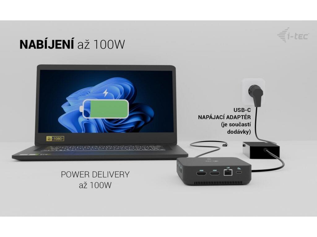 i-tec USB-C DP Dual HDMI Docking Station, Power Delivery 100W + i-tec Universal Charger 100W C31TRIVIDPRO100W I-Tec