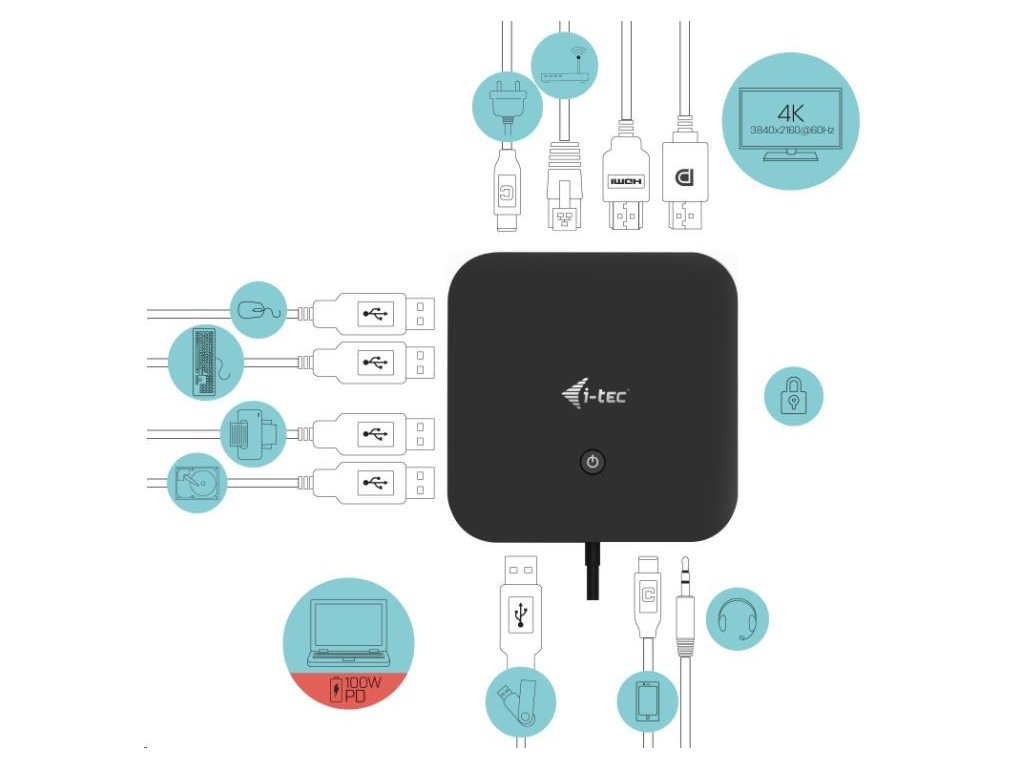 i-tec USB-C HDMI DP Docking Station with Power Delivery 100W C31HDMIDPDOCKPD I-Tec