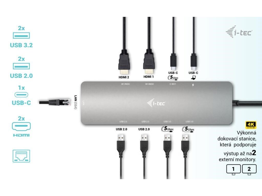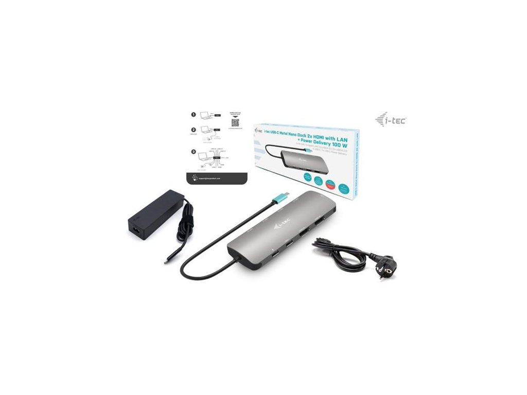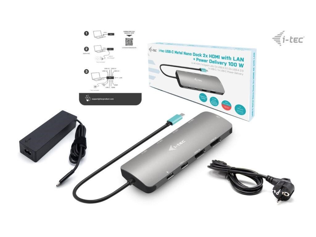 i-tec USB-C Metal Nano 2x HDMI Docking Station, PD 100W + Charger 100W (bundle) C31NANOHDM2D100 I-Tec