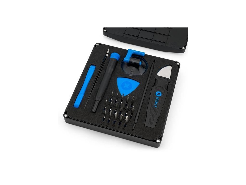 Sada na opravu elektroniky nářadí pro základní opravy a demontáž elektroniky, kompaktní balení šroubováku, bitů, pinzet, páčidel. Sada je uložena v praktickém plastovém pouzdře, ve kterém se skrývá nespočet potřebného nářadí a jiných pomůcek, jež vám ulehčí opravy. Kromě standardních nebo torx bitů je v setu pinzeta, plastové karty, páčidlo či speciální přísavka pro snadnou demontáž displeje, případně zachycení jiných důležitých částí. Vše je vyrobeno z vysoce kvalitního a odolného materiálu, který zajistí dlouhodobou životnost a spolehlivost. Díky tomuto setu se stanete opravdovými profesionály v oboru. *Špičková sada nářadí pro opravy drobné elektroniky *Kvalitní materiály a zpracování *Vše je baleno v pouzdře *Sada iFixit pro profesionála *V sadě iFixit naleznete opravdu nespočet pomůcek, bez kterých byste si v opravách drobné elektroniky nedali rady. Sada obsahuje: *4mm bitový magnetický ovladač (šroubovák) - do kterého snadno zasunete jeden z pinů *Úhlová pinzeta *Spudger - na jedné straně plochý a na druhé straně špičatý *iFixit Jimmy - speciální ocelová čepel *iFixit Opening Tool - Nástroj pro otevírání - modré mini páčidlo *iFixit Opening Picks (6) - Sada 6 otevíracích tipů iFixit - vhodné do nejmenších mezer *iFixit Suction Handle - Přísavka s rukojetí *Magnetické pouzdro *Víko s vestavěným třídícím zásobníkem *Šestnáct 4mm přesných šroubovacích bitů: -Phillips - 000, 00, 0, 1, 2 (křížové) -Pentalobe - P2, P5 (kytička - vhodné pro Apple produkty) -Flathead - 1, 2,5, 4 mm (ploché) -Torx - T4, T5 (hvězdička) -Torx Security - TR6, TR8, TR10 (hvězdička s dírkou) -Tri-Point - Y000 (trojúhelník) -Bit pro vysunutí SIM karty Rozměry a hmotnost balení: 152 x 38 x 159mm / 0,34 kg