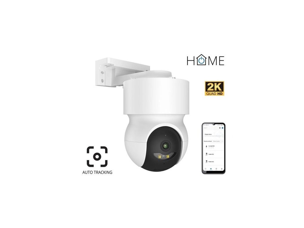 Bezdrátová venkovní otočná voděodolná Wi-Fi kamera s automatickým natáčením za pohybem, obousměrným přenosem zvuku, detekcí pohybu a zvuku, barevným nočním viděním pomocí LED svícení a IR přísvitem až do vzdálenosti 20 m, vysokým rozlišením 2K (3MPx), a dalšími funkcemi. Pro snadné připojení obsahuje 4m dlouhý napájecí kabel.