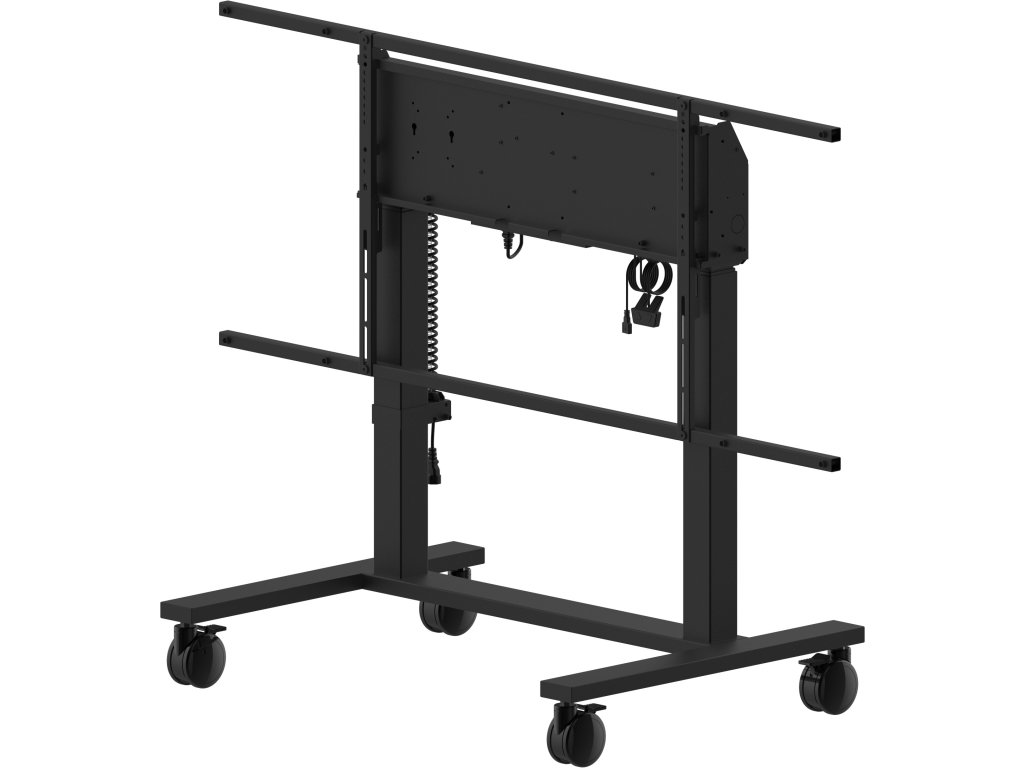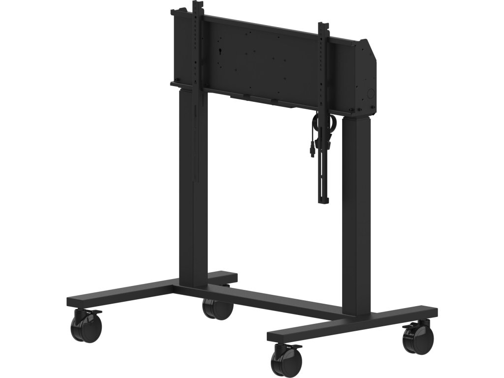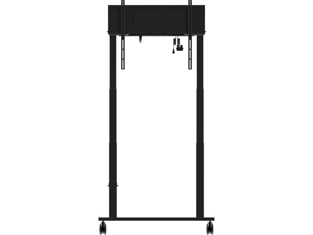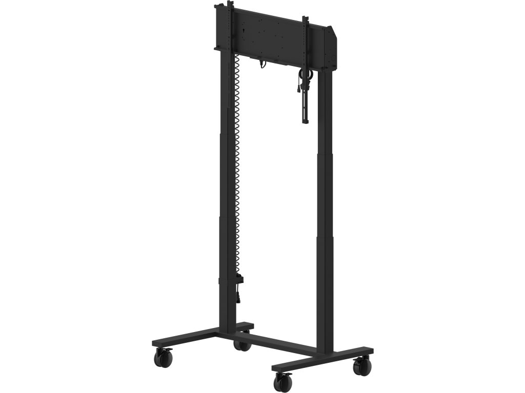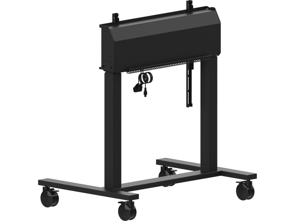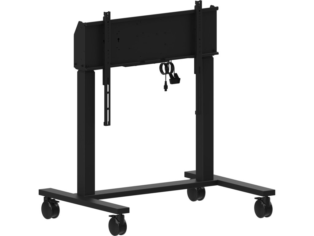 Double column electric floor lift on wheels for monitors up to 98'' An anti-collision electric trolley for large format displays up to VESA 800x600mm. This product is unique because of its screen flexibility and installation ease, within just five steps the product is installed and ready for use in any meeting area. This mobile stand with electrical 950mm height adjustment provides a continuous and silent adjustment, controlled directly from a compatible iiyama TE SERIES display or with the attached control pad. The 4-inch muting castor omni directional wheels make it easy and save to move the car around. The integrated screen bracket supports most VESA patterns, making this floor lift suitable for every display up to 98” with a max. weight of 120kg. *To mount a 105'' display you need the additional mounting kit MD-ADAP001 https://iiyama.com/cz_cs/produkty/md-car2031-b1/
