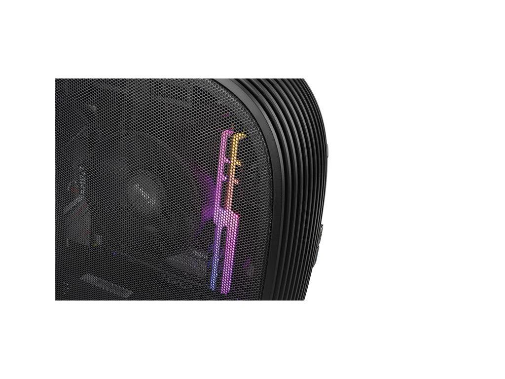 The perforated mesh panel increases airflow and optimizes thermal efficiency.