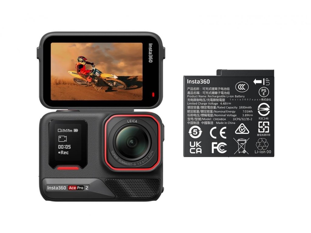 Insta360 Ace Pro 2 akční kamera, snímač 1/1,3", optika Leica, dotykový 2,5" displej, 8K při 30 FPS + akumulátor INST131