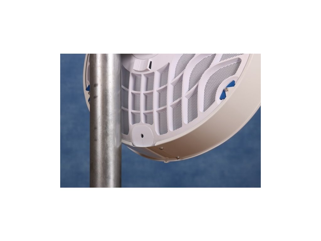 Signální LED je možné vidět skrz děrovanou parabolu.