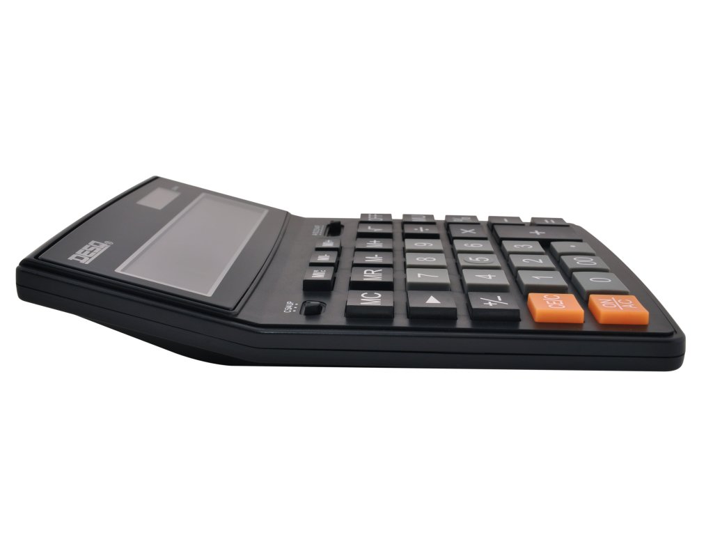 - Odolná stolní kalkulačka - 12ti místný LCD displej - Velká tlačítka - Krytý displej z akrylátového skla - Funkce MU, Backspace, tlačítko s dvojitou nulou, tlačítko (+/-) - Nastavení zaokrouhování a desetinných míst - Tlačítka pro výpočet procent a odmocniny - Trojciferná interpunkce - Dvojitá 3 tlačítková paměť - Automatické vypnutí, které šetří energii - Napájení pomocí solárního panelu nebo baterie CR44 / LR44 (součástí balení) - Hmotnost 270 g - Rozměr 205 x 155 x 40 mm