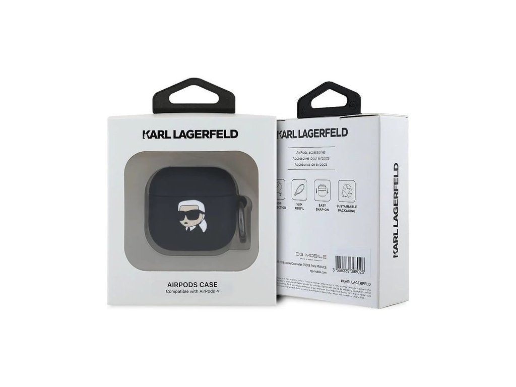 Karl Lagerfeld 3D Logo NFT Karl Head Silikonové Púzdro pre AirPods 4 čierne 57983124125