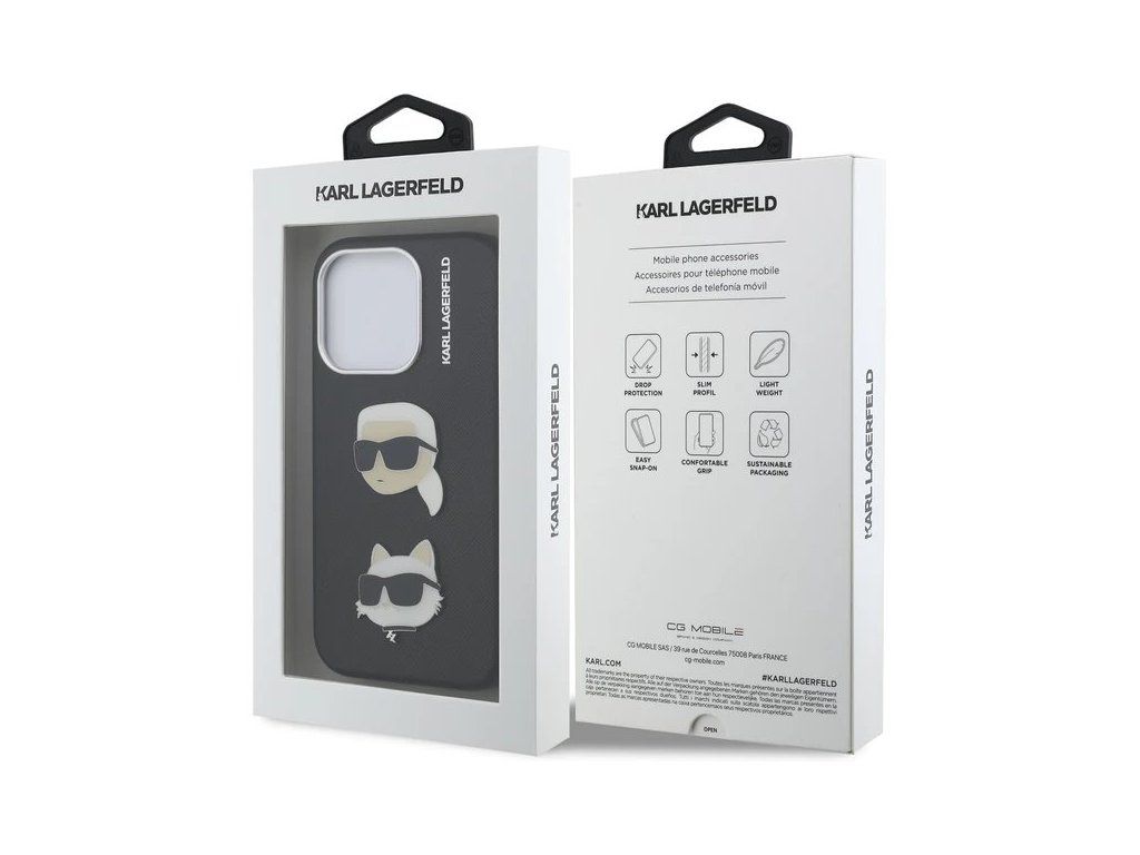 Karl Lagerfeld Grained PU K&CH Heads kryt iPhone 15 Pro čierny 57983125018