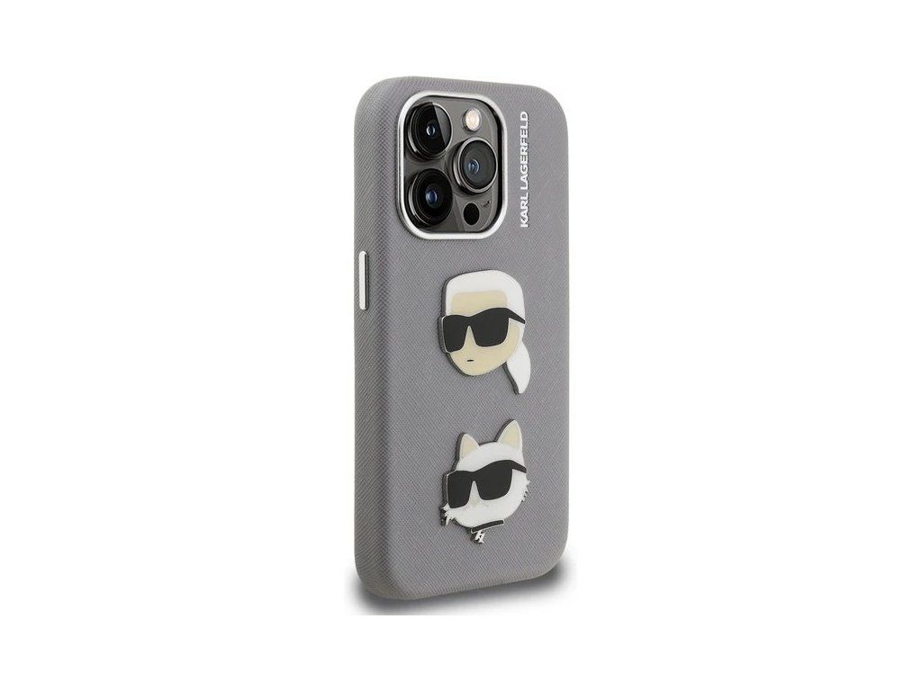 Karl Lagerfeld Grained PU K&CH Heads kryt iPhone 15 Pro Max šedý 57983125025