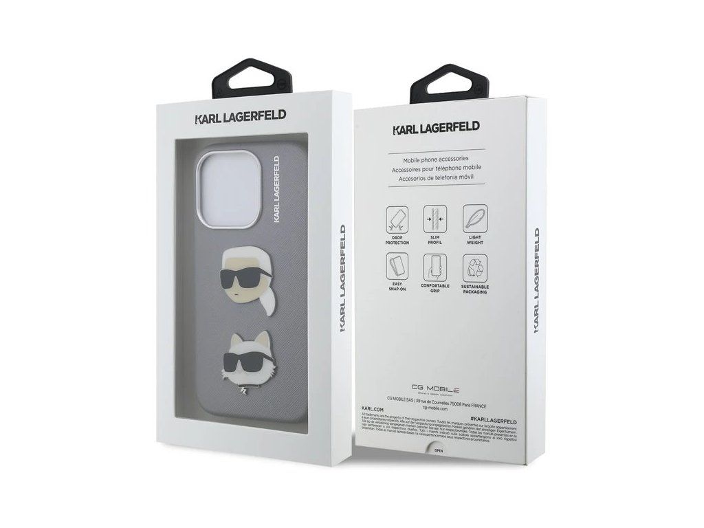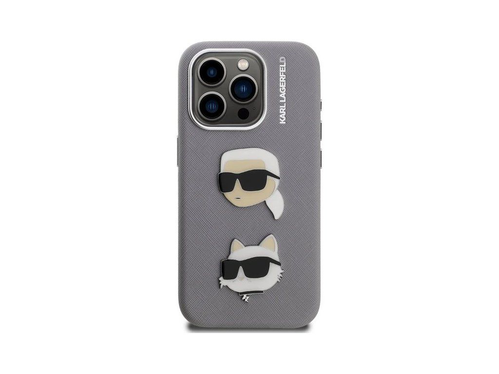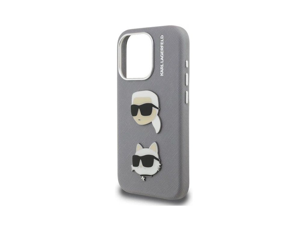 Karl Lagerfeld Grained PU K&CH Heads kryt iPhone 15 Pro šedý 57983125024