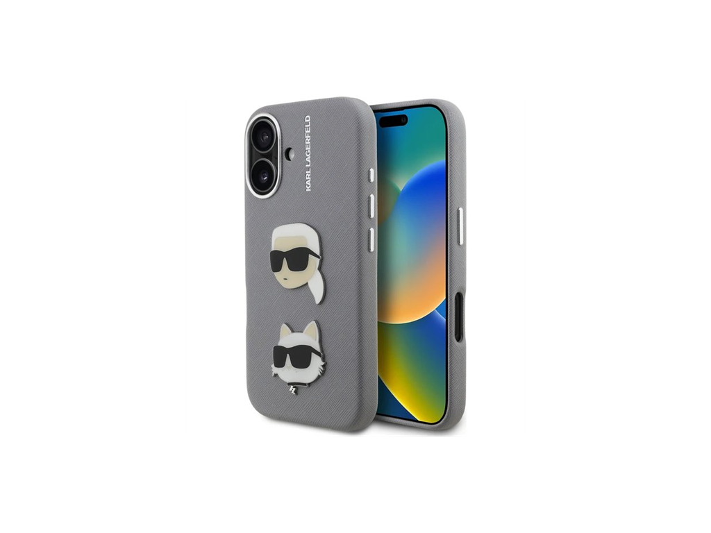 Karl Lagerfeld Grained PU K&CH Heads kryt iPhone 16 šedý 57983125026