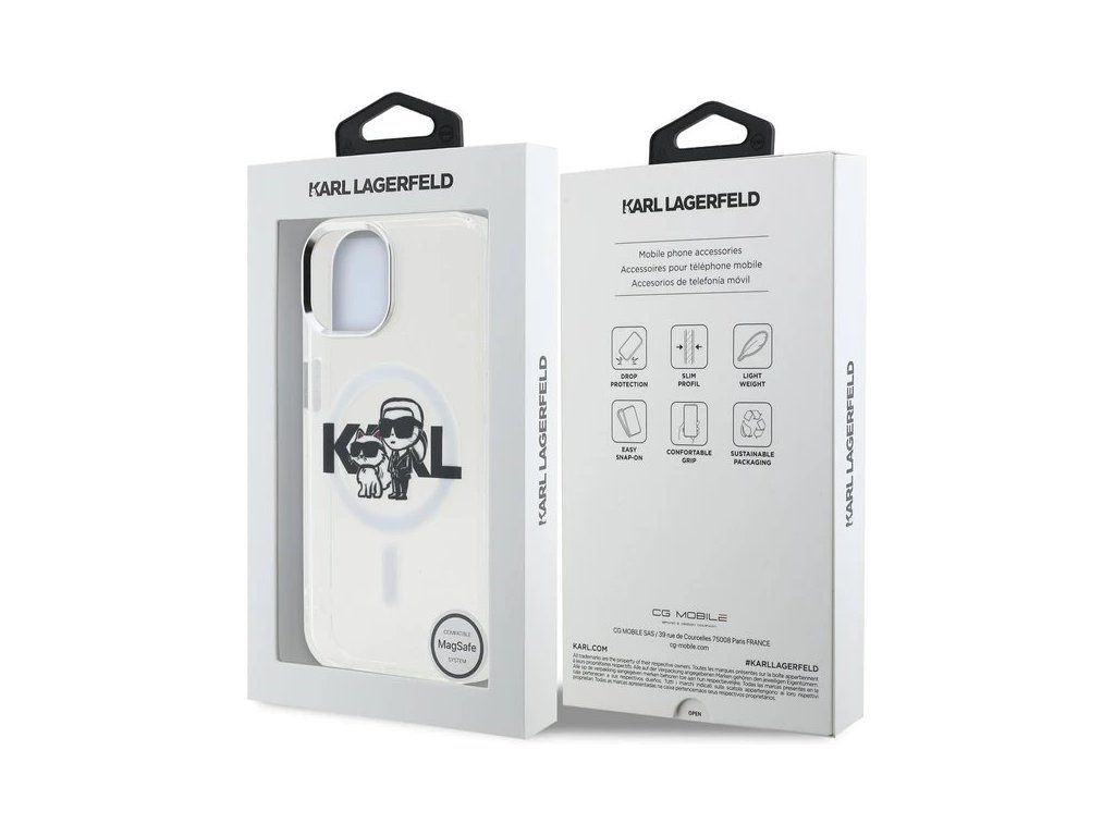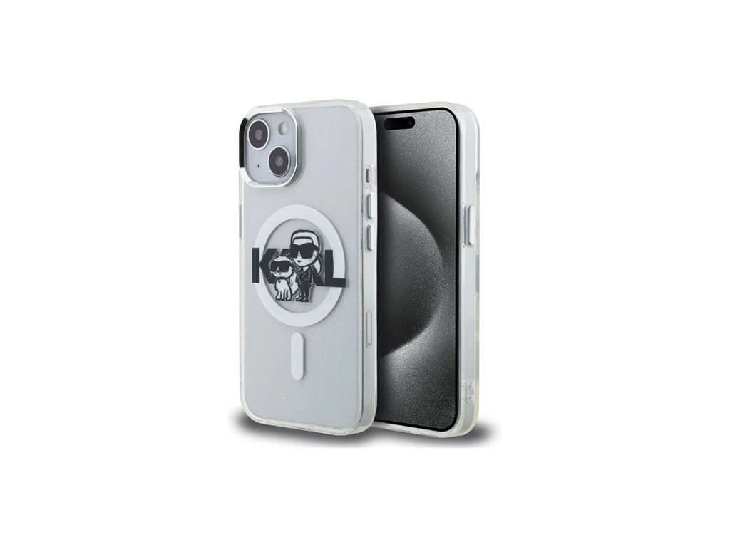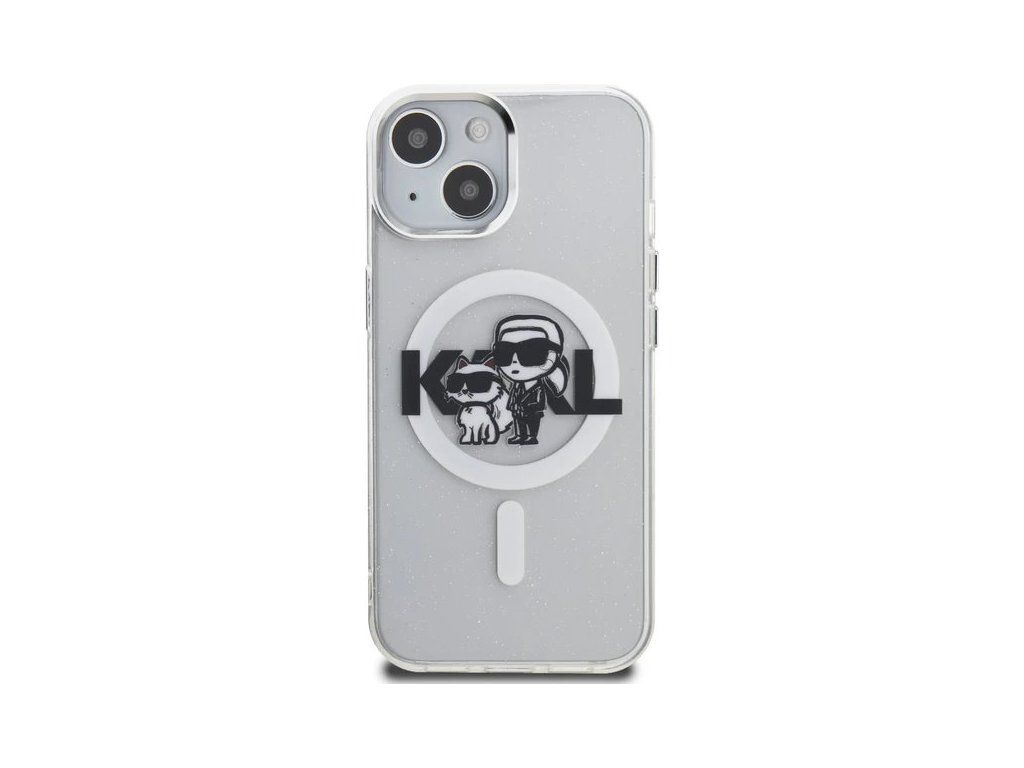 Karl Lagerfeld IML Glitter Karl and Choupette Sketch MagSafe kryt iPhone 15 priehľadný 57983125045