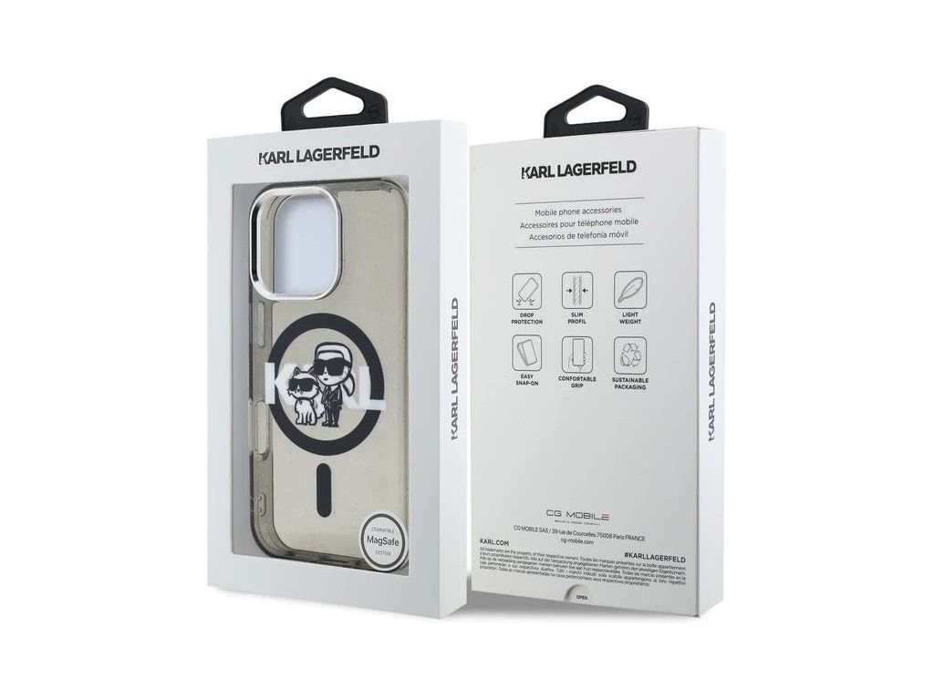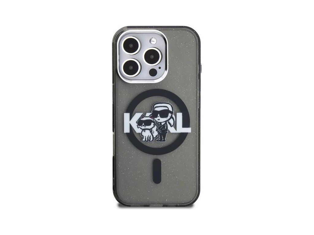 Karl Lagerfeld IML Glitter Karl and Choupette Sketch MagSafe kryt iPhone 16 Pro čierny 57983125043