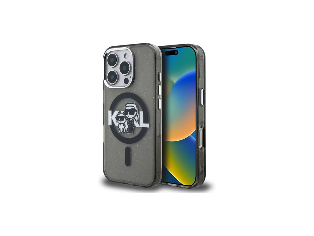Karl Lagerfeld IML Glitter Karl and Choupette Sketch MagSafe kryt iPhone 16 Pro Max čierny 57983125044