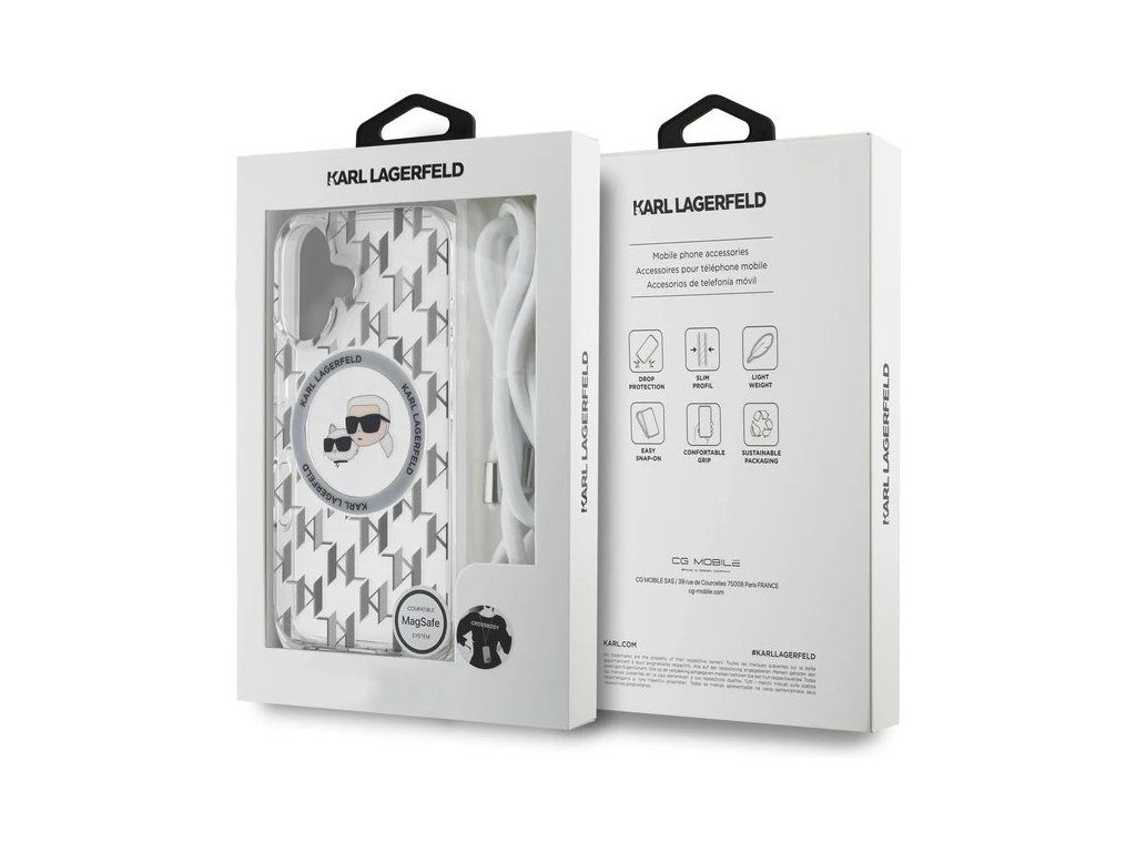 Karl Lagerfeld IML Monogram Crossbody K&CH Heads MagSafe kryt iPhone 16 priehľadný 57983122774