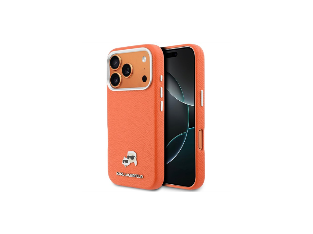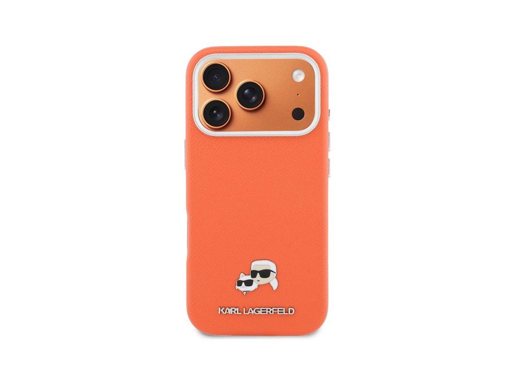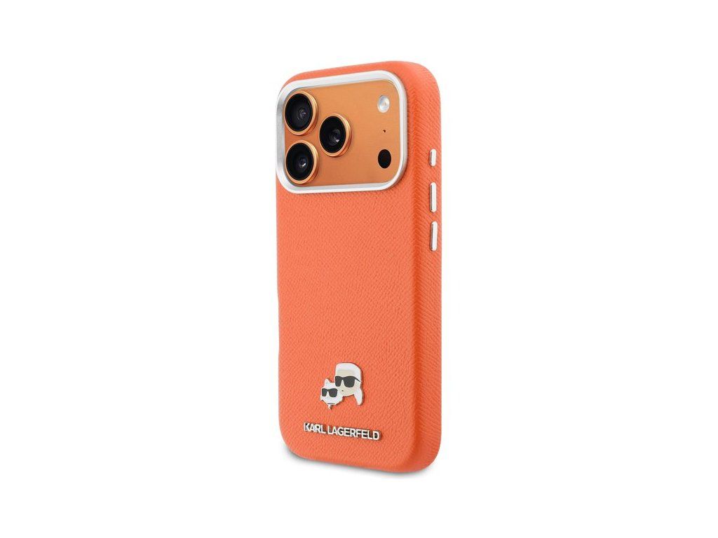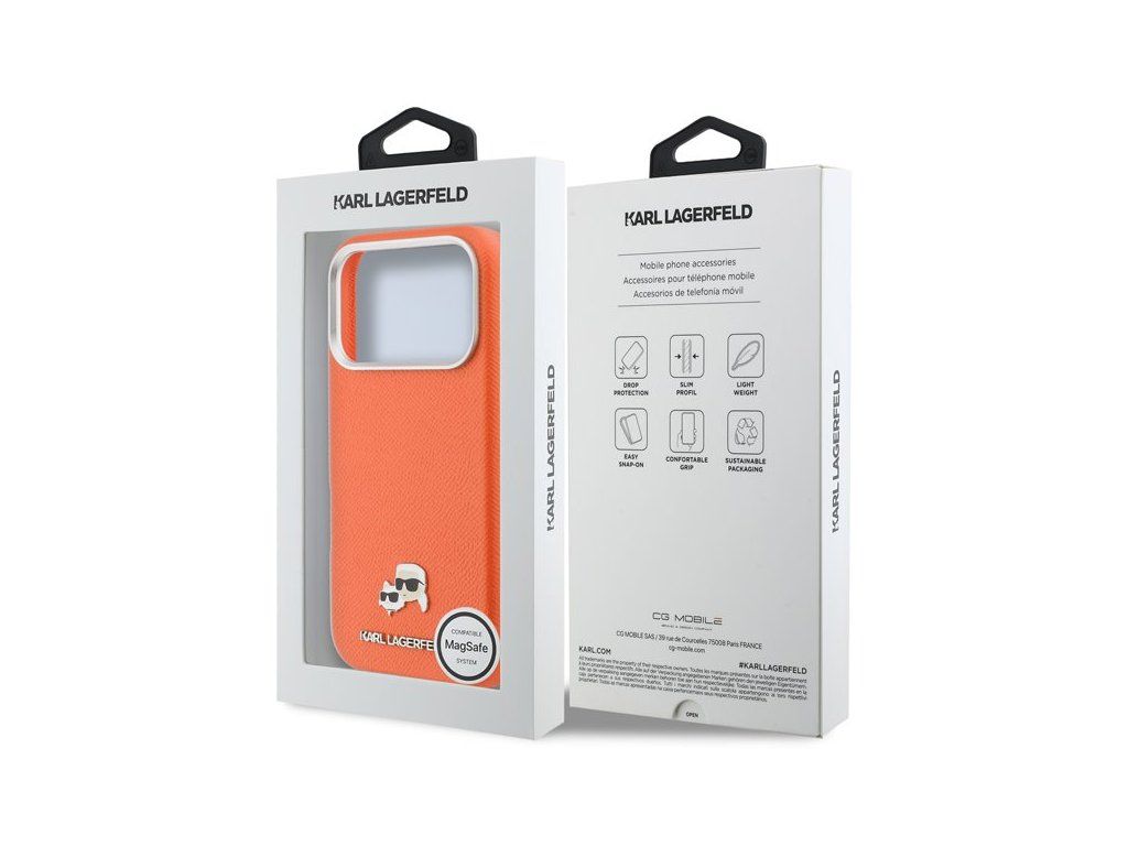 Karl Lagerfeld PU Karl and Choupette Heads Pins MagSafe kryt iPhone 17 Pro Max oranžový 57983128992