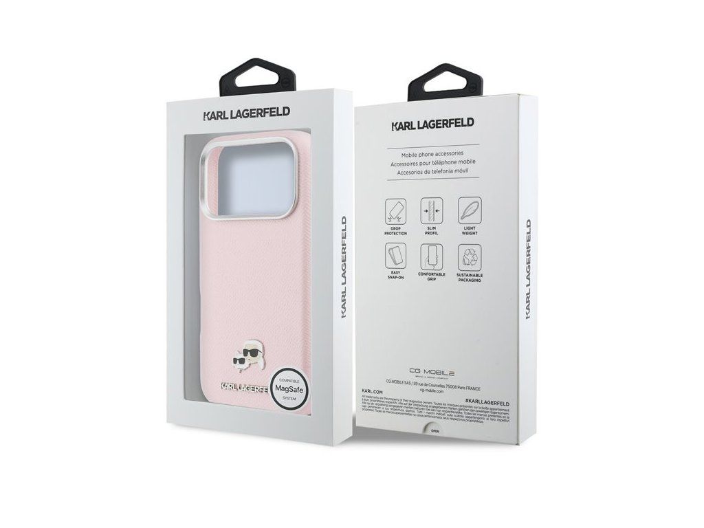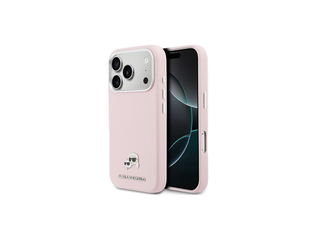 Karl Lagerfeld PU Karl and Choupette Heads Pins MagSafe kryt iPhone 17 Pro Max ružový 57983128976
