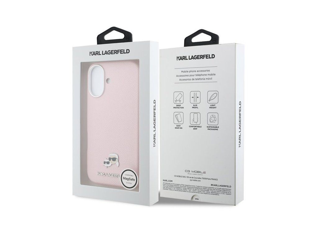 Karl Lagerfeld PU Karl and Choupette Heads Pins MagSafe kryt iPhone 17 ružový 57983128973