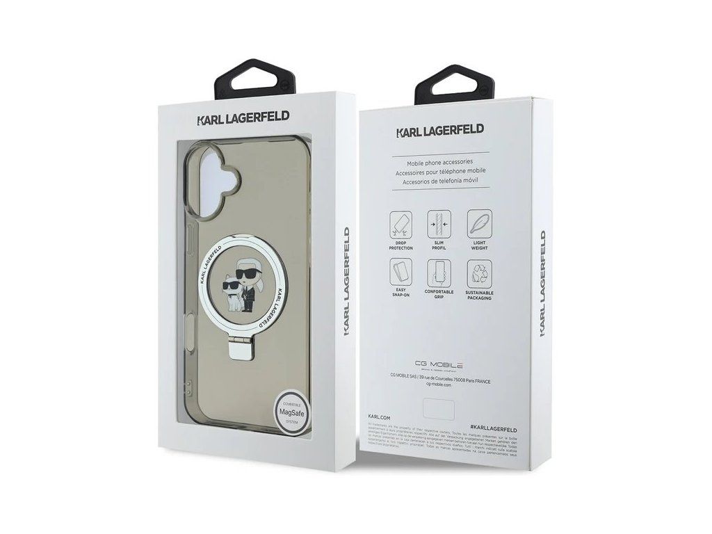 Karl Lagerfeld Ringstand Karl and Choupette MagSafe kryt iPhone 16 čierny 57983122701