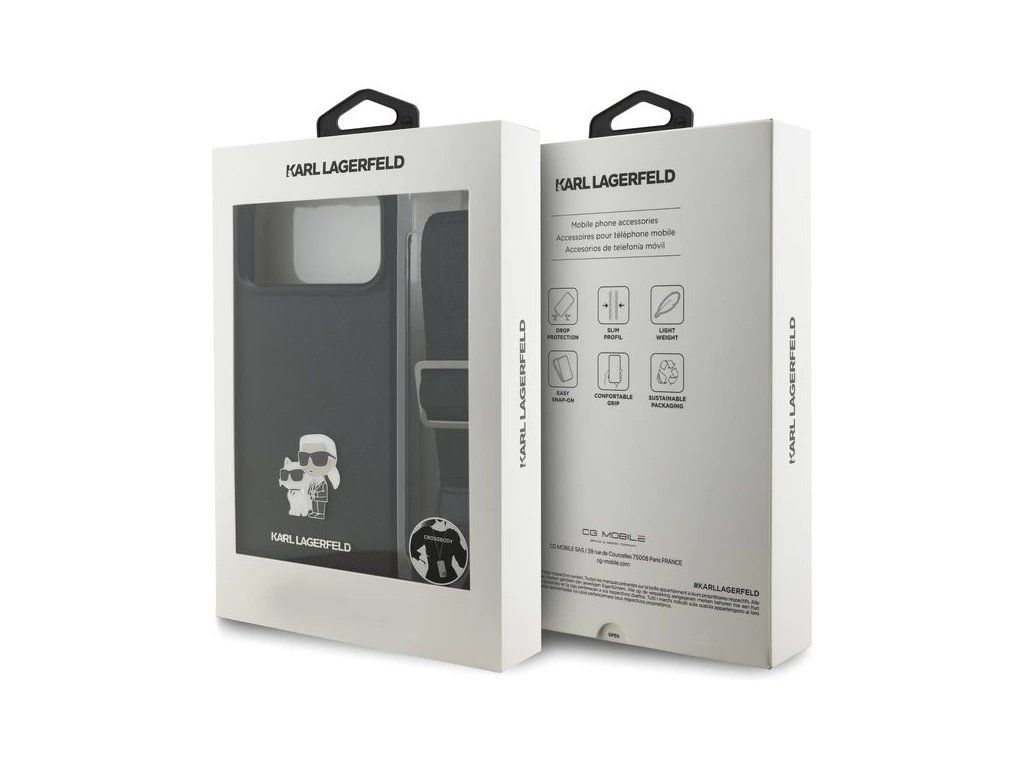 Karl Lagerfeld Saffiano Crossbody Popruh Metal Karl and Choupette kryt iPhone 17 Pro čierny 57983127717