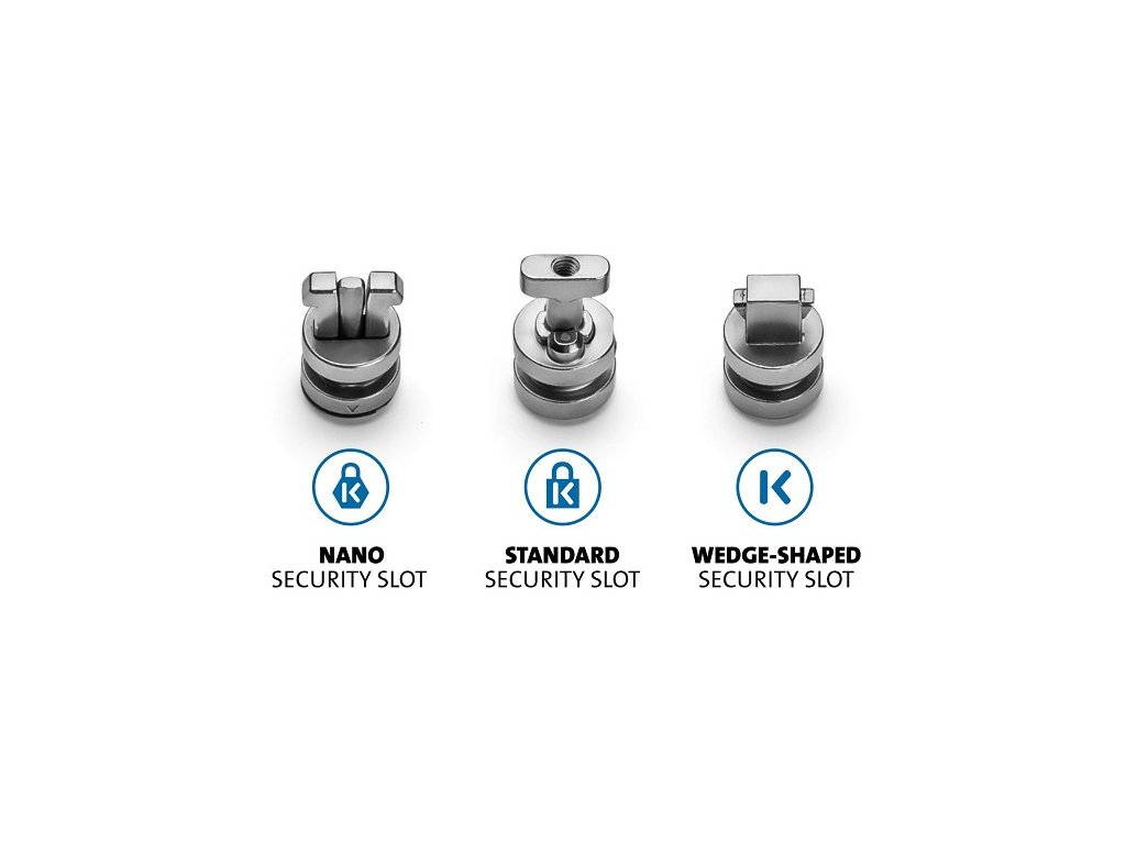 ClickSafe® Universal Slots Security Anchors Kit je univerzální sada bezpečnostních kotev kompatibilní se všemi Kensington ClickSafe® bezpečnostními zámky. Obsahuje tři různé kotvy pro Standardní (T-Bar™), Nano a klínové (Wedge-Shaped) bezpečnostní sloty notebooků, bez ohledu na značku či generaci zařízení. ClickSafe® bezpečnostní kotvy byly nezávisle testovány na pevnost, fyzickou odolnost a mechanickou spolehlivost.