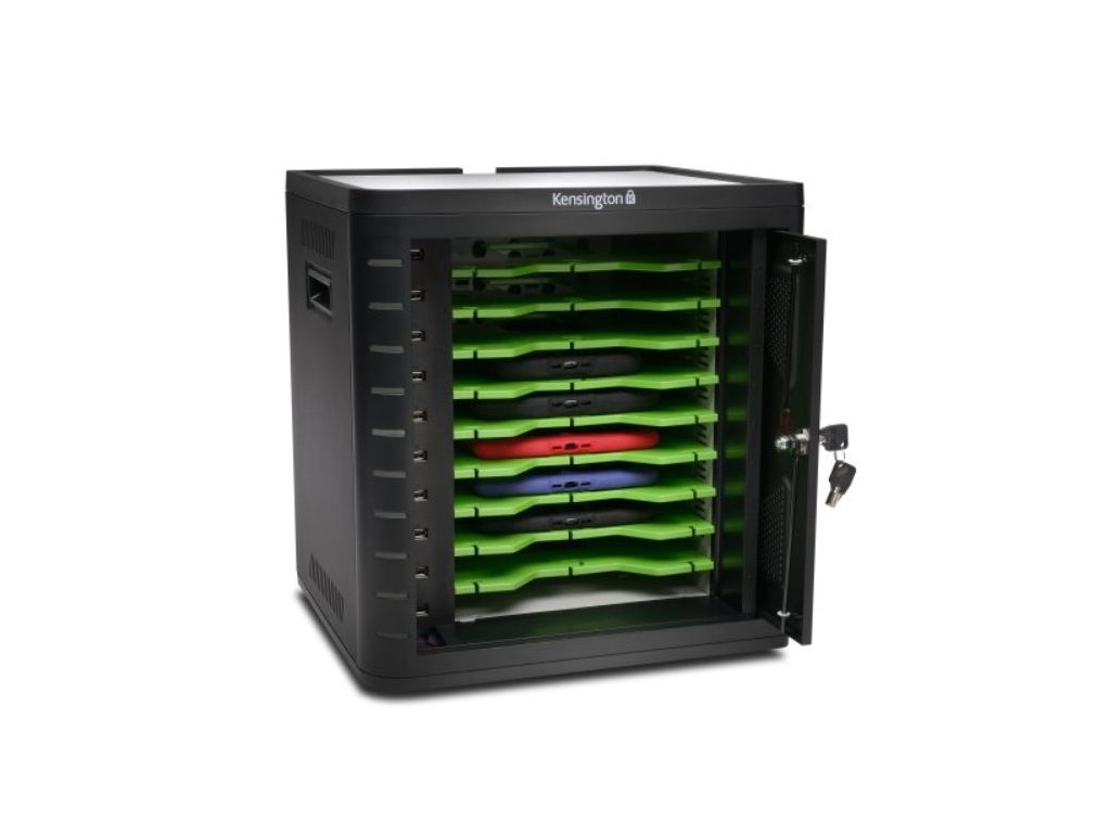V době, kdy se stále více tabletů používá ve školách, firmách a maloobchodech, došlo ke zvýšení poptávky po praktickém a bezpečném úložném prostoru. Společnost Kensington může tuto poptávku uspokojit pomocí nové univerzální nabíjecí a synchronizační skříňky Kensington pro tablety. Skříňka poskytuje prostor až pro 10 tabletů, včetně zařízení iPad, Galaxy Tab, Kindle a dalších. Je ideálním řešením pro nabíjení tabletů poté, co všichni odešli po škole nebo práci domů, aby tablety mohly být nabité a připravené na následující den. Nabízí také přizpůsobitelné zásuvky, takže každá pozice pojme i tablety v odolném ochranném pouzdře. Na sebe lze uložit až tři skříňky, čím v jedné učebně získáte kapacitu až na 30 tabletů. Přední zabezpečená dvířka se při otevření zasunou a nabízí ochranu s přístupem pomocí přizpůsobeného klíče. Dodaná montážní destička a kabelový zámek bezpečně zajistí skříňku na místě.