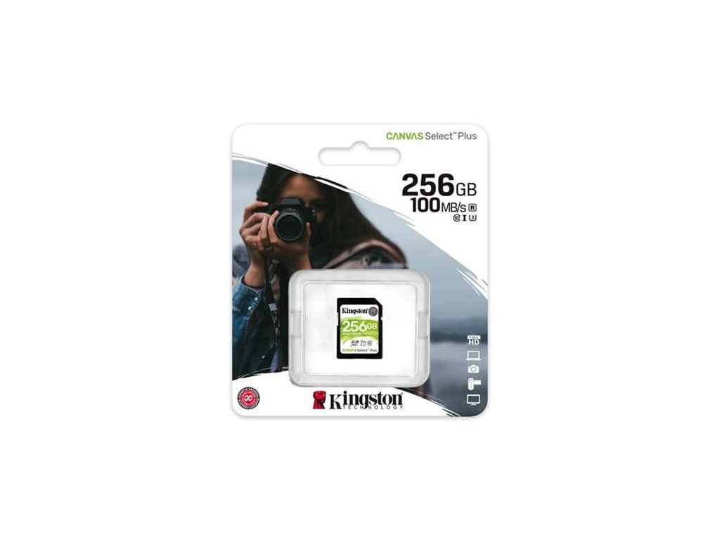 Kingston's Canvas Select Plus SD card is designed with reliable performance, speed, and durability for transferring and developing high-resolution photos or capturing and editing full HD videos. It can reach Class 10 UHS-I speeds up to 150MB/s* for easy storage and quick transfers along with a Video Class 30 interface that can record cinematic Full HD video**. The Canvas Select Plus SD card is available in multiple capacities up to 1TB*** and with a lifetime warranty.