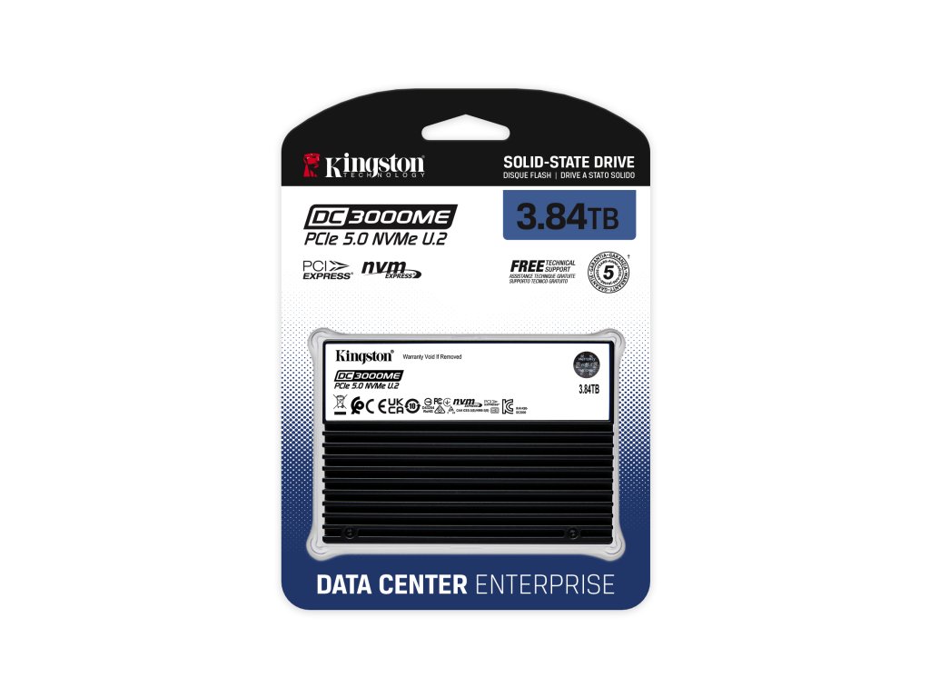 SSD disk DC3000ME U.2 pro datová centra společnosti Kingston je vybaven vysokorychlostním rozhraním PCIe 5.0 NVMe a využívá paměť 3D eTLC NAND, takže je vhodný pro širokou škálu serverových aplikací, jako jsou umělá inteligence, HPC, OLTP, databáze, cloudová infrastruktura a edge computing. DC3000ME obsahuje vestavěnou ochranu proti ztrátě napájení, která chrání data v případě náhlé ztráty napájení, a AES 256bitové šifrování pro maximální zabezpečení dat. DC3000ME využívá nejnovější vysokorychlostní rozhraní PCIe 5.0 a je zpětně kompatibilní se servery a základními deskami PCIe 4.0. DC3000ME je nabízen v kapacitách 3,84 TB, 7,68 TB a 15,36 TB1 a je podporován legendární technickou podporou Kingston a pětiletou omezenou zárukou. * Šifrování TCG Opal 2.0, AES 256-bit * Určený pro AI, HPC, cloud, edge computing, RAID, serverové použití Model: Kingston DC3000ME Kapacita: 3840GB Typ disku: U.2, 2.5” x 15mm Rozhraní: PCIe NVMe Gen5 x4 (zpětně kompatibilní s gen 4) Přenosová rychlost: *Zápis - 5 800MB/s *Čtení - 14 000MB/s Provozní teplota: 0 - 70°C Rozměry: 100.50mm x 69.8mm x 14.8mm Hmotnost: 146.2g Životnost: 2000000 h MFTB, 7,008TB, 1DWPD (5 let)