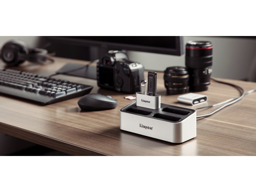 Kingston Workflow Station a čtečky poskytují flexibilní systém pro přenos videa, fotografií a zvuku z více zdrojů najednou. Urychlete svou postprodukci a vytvořte způsob stahování souborů, které vyhovuje vašim potřebám. Workflow Station Dock je přizpůsobitelný, takže můžete v terénu používat pouze USB miniHub. Workflow Station a čtečky podporují rychlosti USB 3.2, a stanice umožňuje pracovat se čtyřmi čtečkami najednou. Zařízení je kompatibilní pouze se čtečkami ''Workflow''. Rozhraní: Stanice USB 3.2. gen 2, USB minihub: USB 3.2. gen 1 Konektor: USB-C Podporované vstupy USB: USB miniHub USB-A, USB-C Balení obsahuje: dokovací stanice, USB miniHub, kabel USB-C na USB-C, napájecí adaptér, 4 redukce napajecího adapteru pro různé země Rozměry: Dok - 160.27 x 70.27 x 55.77mm mini hub - 62.87x16.87x50mm Operační teplota: -0°C~60°C OS kompatibilita: Windows® 10, 8.1, 8, Mac OS (v.10.10.x +) Zařízení obsahuje USB minihub, ale dá se zkombinovat se čtečkami SD karet WFS-SD, WFS-SDC a dalšími minihuby WFS-USB.