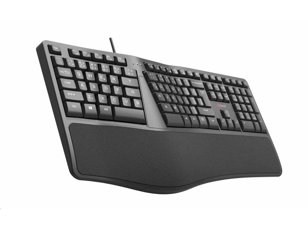 C-TECH Klávesnice KB-113E USB, ERGO, černá, CZ/SK C-Tech
