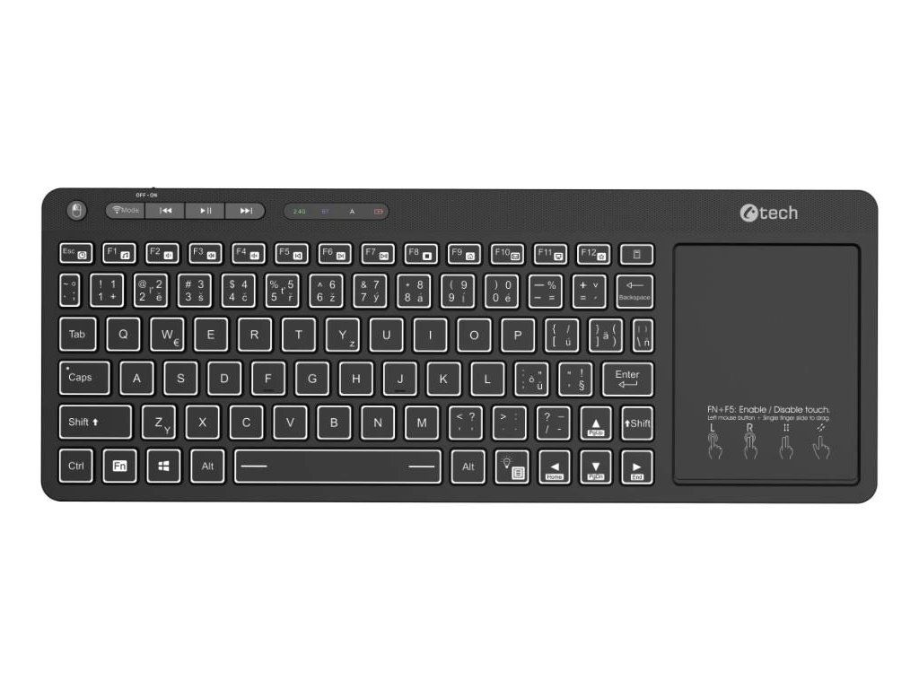 C-TECH Klávesnice WLTK-03, Bezdrátová, Touchpad, černá C-Tech