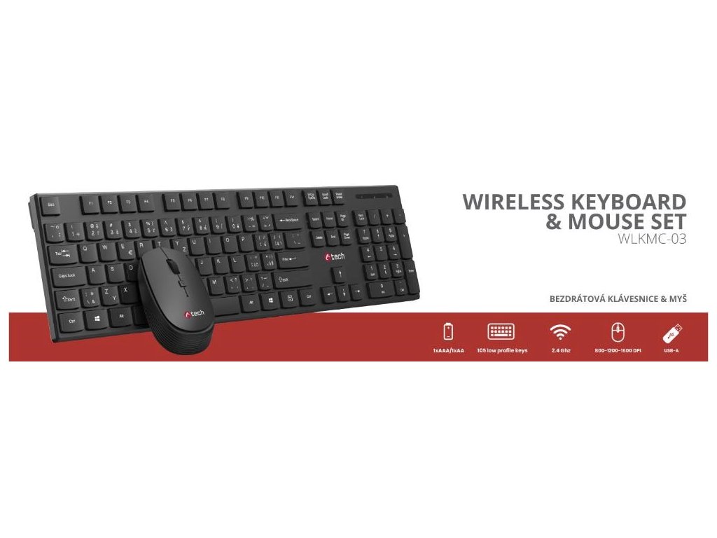 Klávesnice C-TECH WLKMC-03, bezdrátový combo set s myší, černý, USB, CZ/SK C-Tech