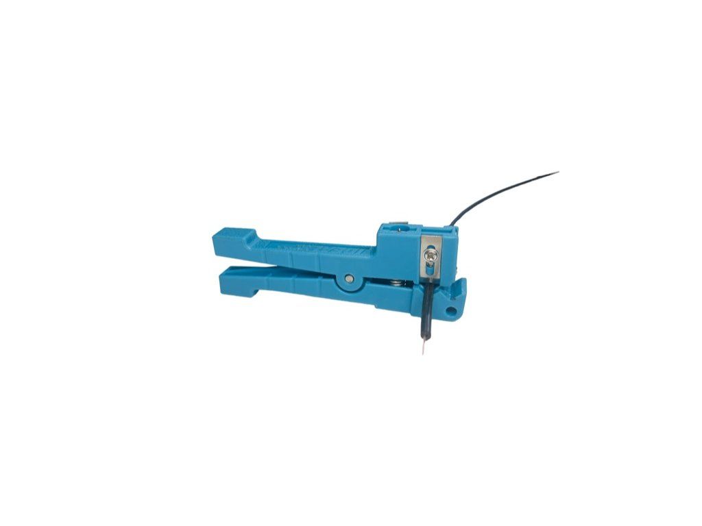Kleště zdrhovací, pro kabely 3,2-6,4mm kleště pro stripování pláště optického kabelu * umožňují i podélné naříznutí pláště * nastavitelná hloubka řezu * dodávány včetně 3 přímých břitů a 1 příčného břitu * modrá barva