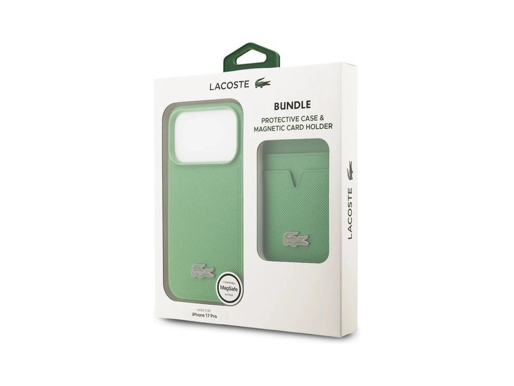 Lacoste Iconic Petit Pique MagSafe kryt + peňaženka iPhone 17 Pro zelený 57983127666
