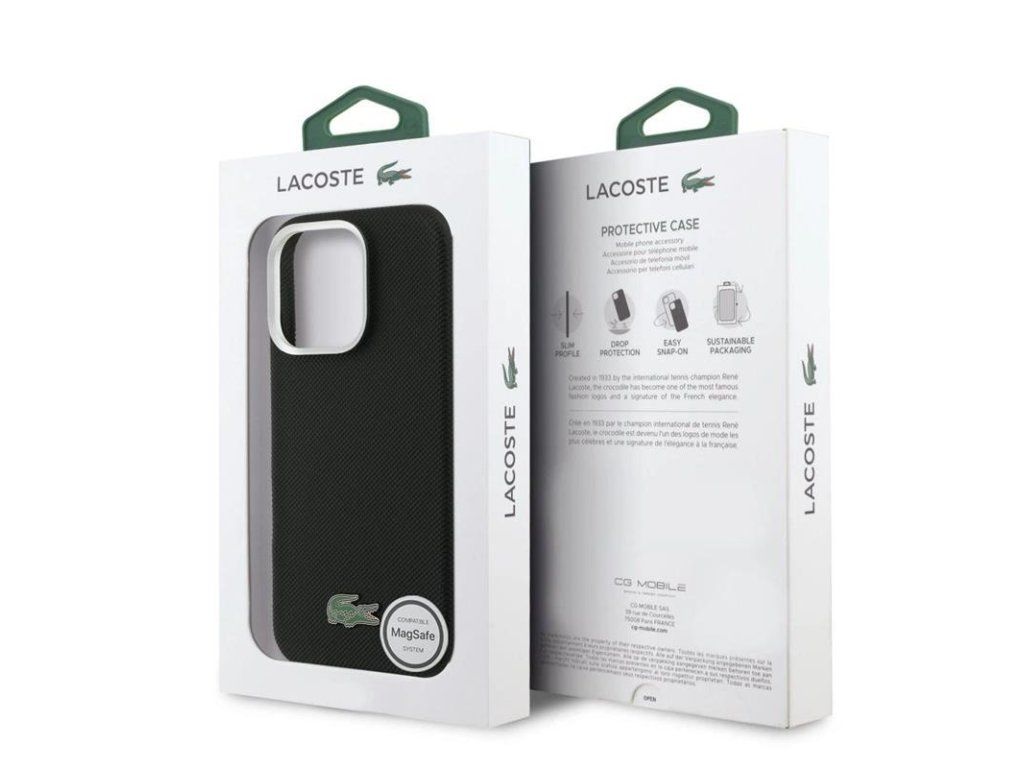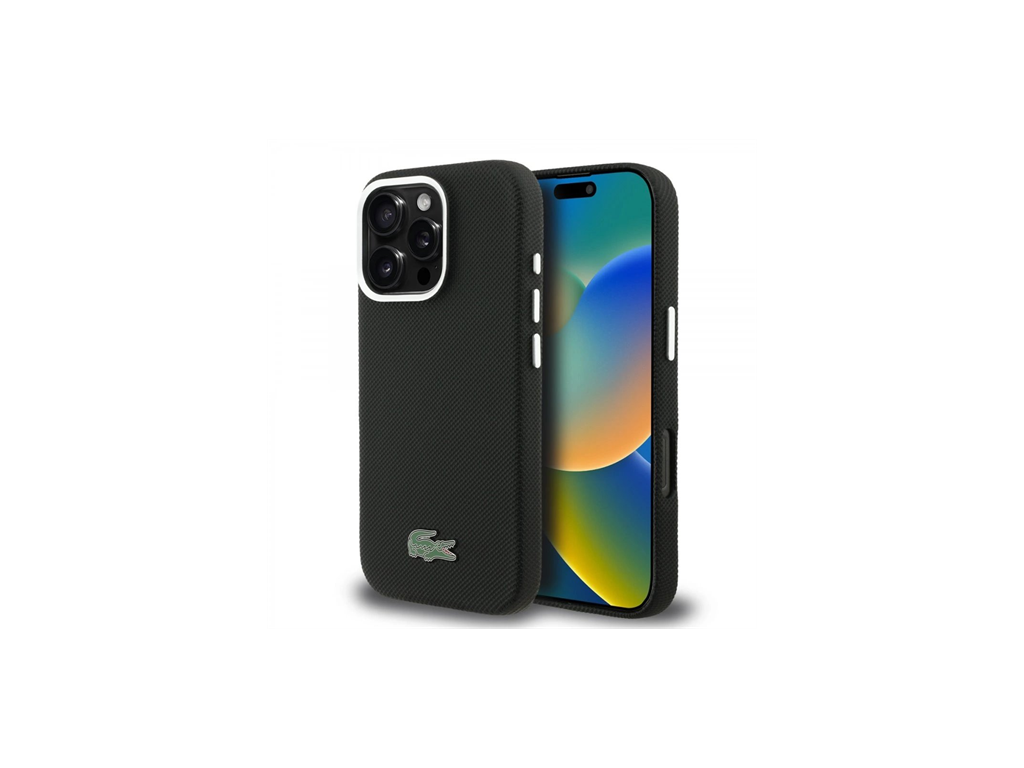 Lacoste PVC Iconic Petit Pique Metal Logo MagSafe kryt iPhone 16 Pro čierny 57983130051