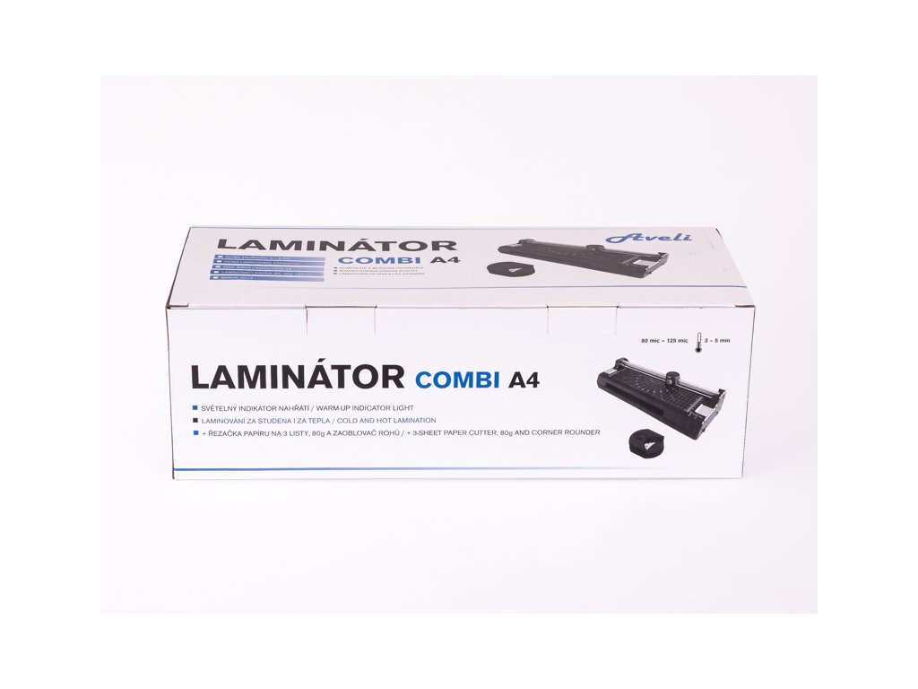 Laminátor AVELI Combi A4 s kotoučovou řezačkou 2 v 1 je ideálním řešením pro domácí využití nebo menší kanceláře. Zpracovává dokumenty do formátu A4. Laminátor Rozměr: 387x142x99 mm Doba zahřívání: 3-5 min Rychlost laminace: 230 mm/min Velikost laminovací folie: A4,A5,A6,A7 Tloušťka folie: 2x80, 2x100, 2x125 mic Způsob laminování: za studena i za tepla Barva: černá Řezačka Typ řezu: rovný Kapacita řezu: 3 listů (80g/m2) Řezný nůž: nerezová ocel Zaoblovač rohů: ANO Praktická kombinace Laminátoru AVELI COMBI A4 s kotoučovou řezačkou a zaoblovačem rohů je ideální řešení pro domácí použití nebo menší kancelář. Kompaktní a moderní provedení. Díky laminátoru AVELI COMBI A4 uchráníte své vzpomínky a dokumenty před vodou či poškozením. Produktové video můžete shlédnout zde: https://www.youtube.com/watch?v=YzK__MHFQs4