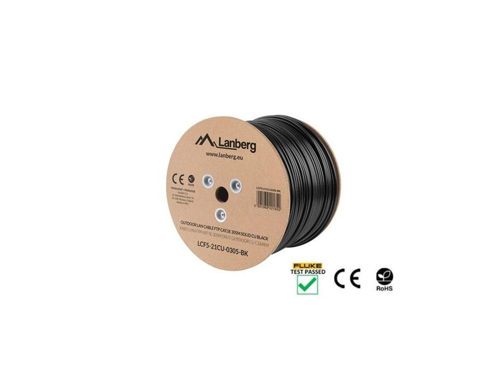 LANBERG LAN KABEL CAT.5E FTP 305M PEVNÝ VENKOVNÍ CU ČERNÝ FLUKE PŘEDÁN LCF5-21CU-0305-BK Lanberg