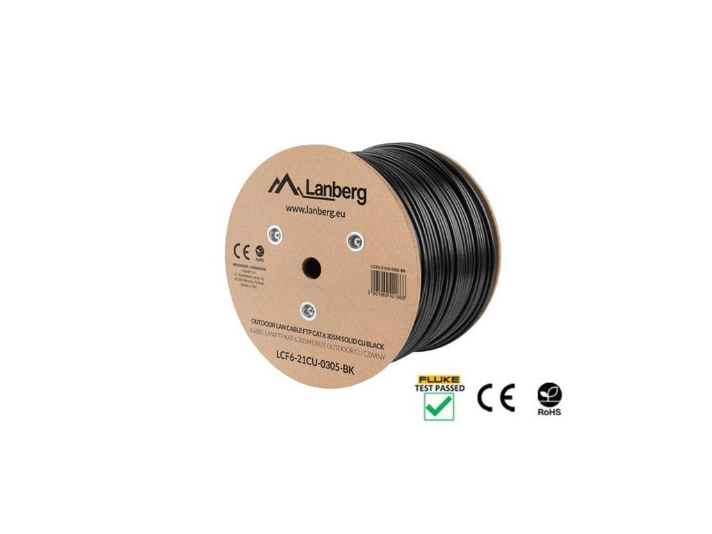 LANBERG LAN KABEL CAT.6 FTP 305M PEVNÝ VENKOVNÍ CU ČERNÝ FLUKE PŘEDÁN LCF6-21CU-0305-BK Lanberg