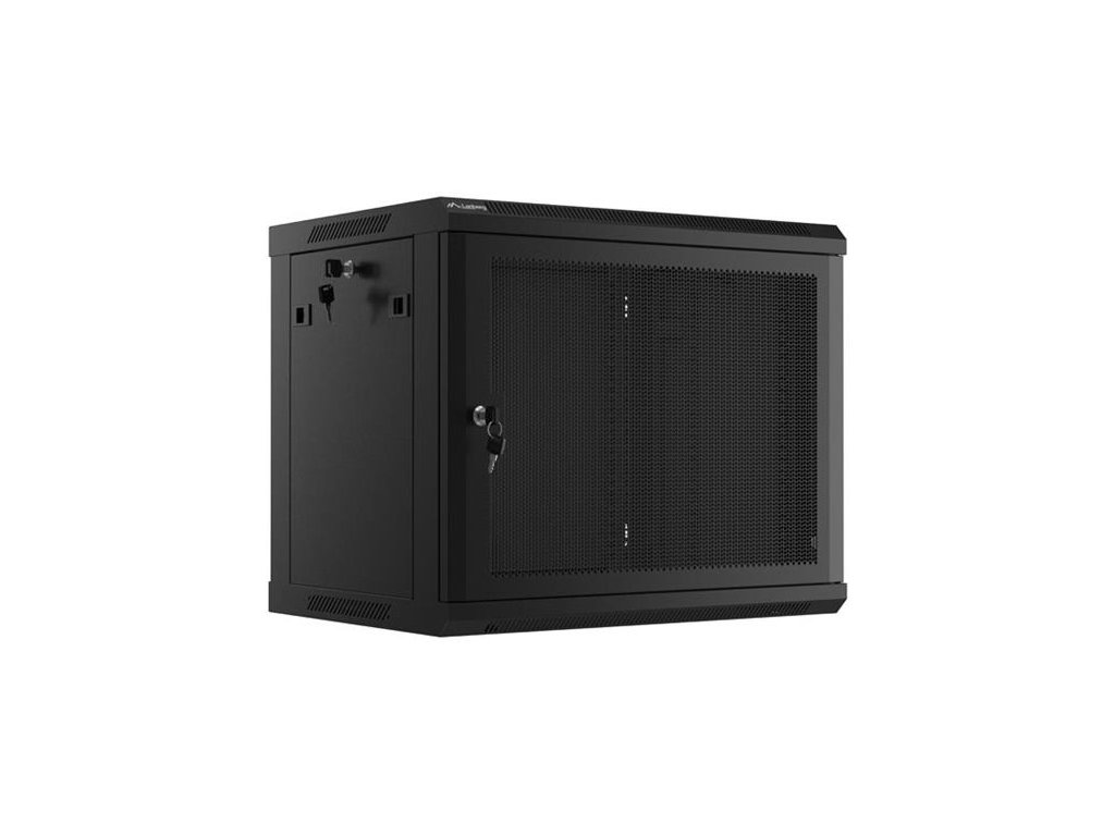 LANBERG Nástěnná jednodílná skříň 19", 9U/600x450, (v rozloženém stavu), perforované dveře, černá (RAL9004) WF01-6409-23B Lanberg