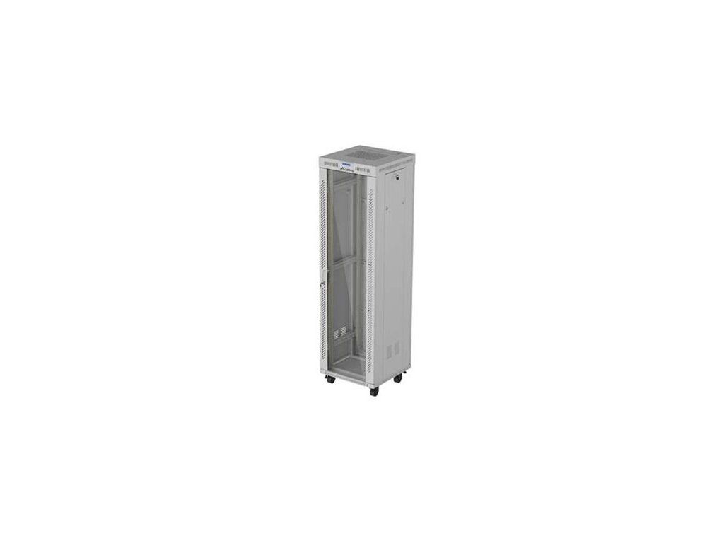 LANBERG Volně stojící skříň 19" 42U/600x600 (v rozloženém stavu) síťované dveře LCD šedá (RAL9004)