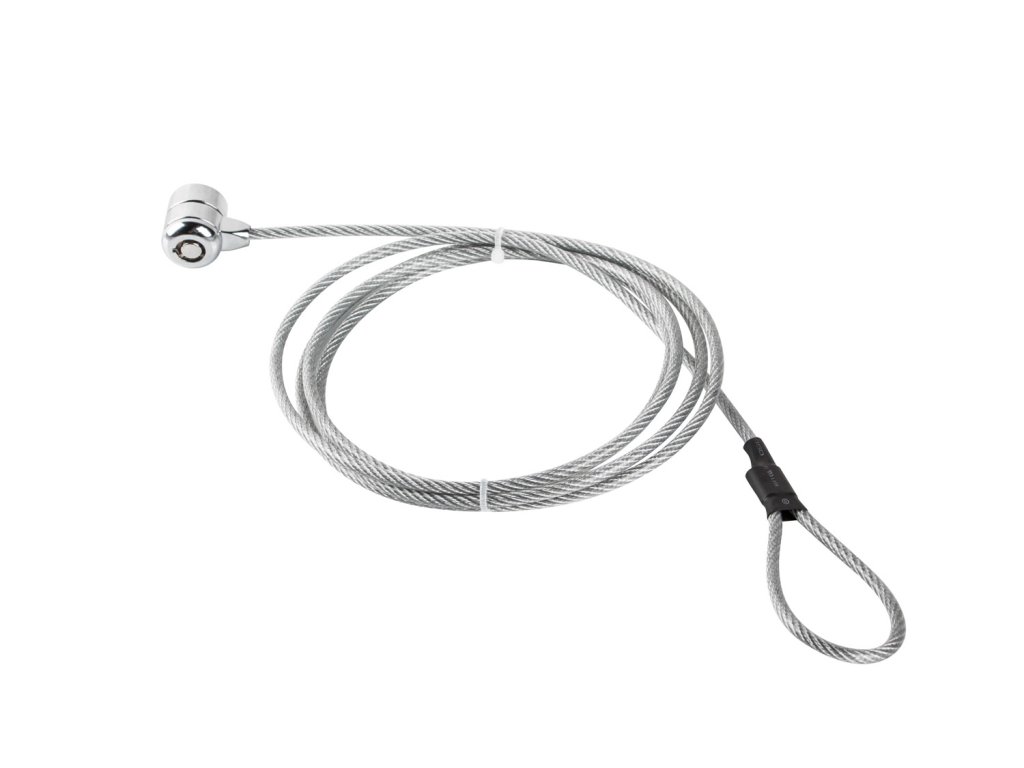 Lankový bezpečnostní zámek na klíč pro notebooky vyrobený z galvanizované oceli, pokrytý gumovou vrstvou, vhodný pro montáž v bezpečnostních slotech notebooků a jiných zařízení např. trezorech, který zvyšuje bezpečnost vašeho zařízení a poskytuje ochranu před odcizením. Typ zámku: Na klíč Barva: Stříbrná Délka kabelu: 1,8m Materiál: ocel, PVC Standard: Kensington lock 3x7mm