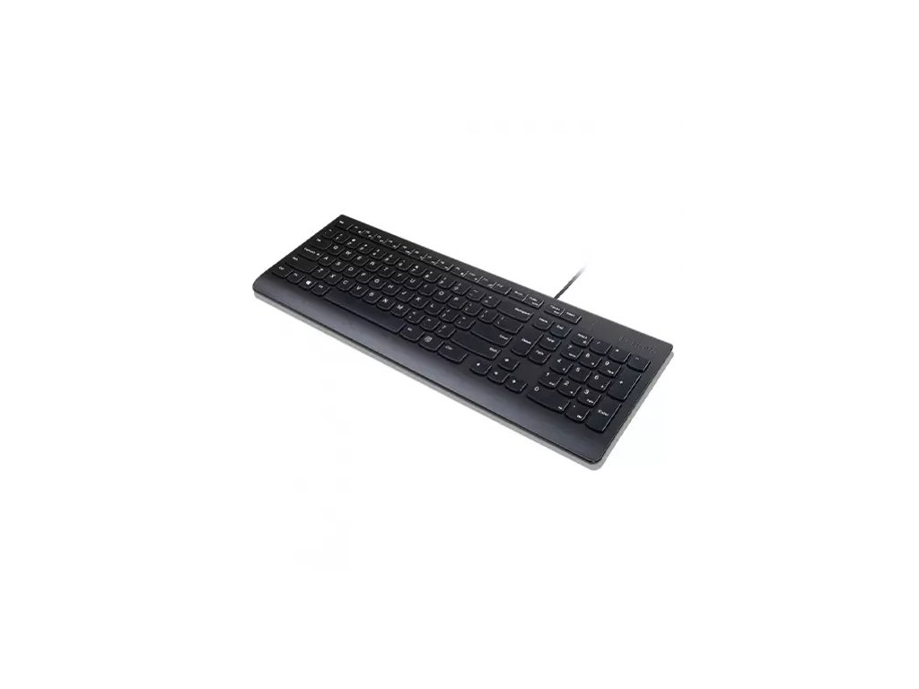 Text Lenovo klávesnice Essential, SK * rozložení ve 3 zónách v plné velikosti * nízkoprofilové krytky kláves - tiché psaní * nastavitelné sklopné nožičky * odolné proti polití Technické parametry Rozvržení klávesnice: slovenské (SK) Počet kláves: 105 Numerická klávesnice: ano Podsvícení: ne Rozhraní/konektivita: USB-A Délka kabelu: 1,8m Barva: černá Doporučené požadavky na systém: volný USB port, Windows Rozměry: 424x146x20mm Hmotnost: 570g