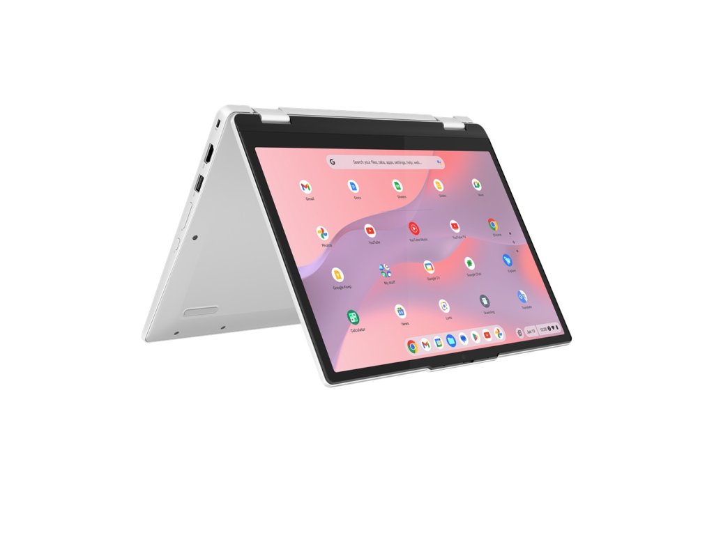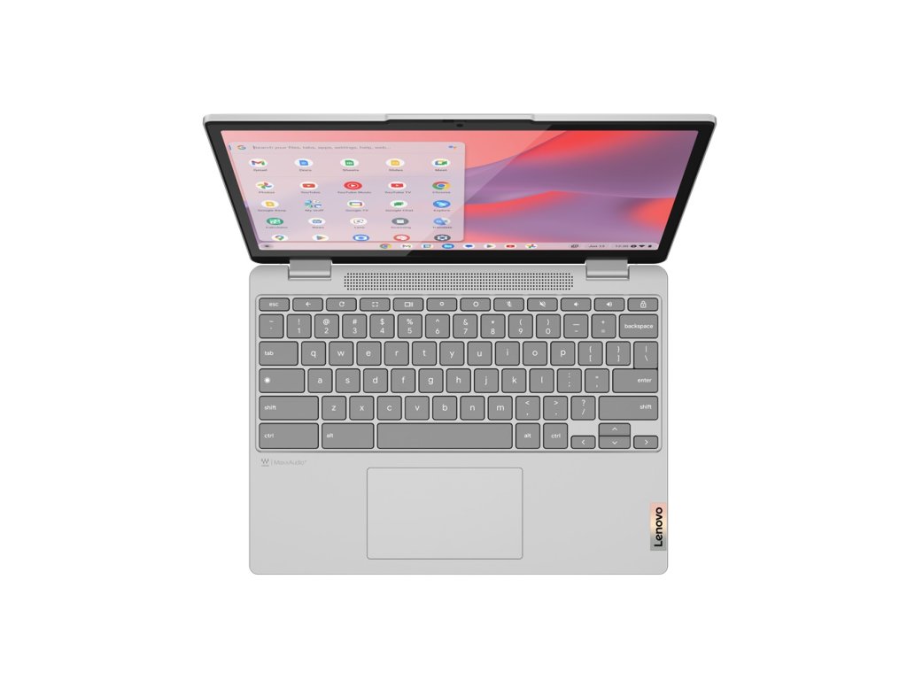 Lenovo IdeaPad Flex 3 Chrome 12IAN8 * certifikace ENERGY STAR® 8.0 Operační systém: ChromeOS Procesor: Intel® N100 (4C/4T, 0,8/3,4GHz, 6 MB) Paměť: 8GB integrovaná LPDDR5-4800 Počet slotů (celkem/volných): bez slotů (0/0) Maximální velikost: 8GB na desce, nelze navýšit Pevný disk: 128GB eMMC 5.1 Sloty pevného disku: ne Optická mechanika: ne Čtečka paměťových karet: microSD Displej: 12,2'' dotykový WUXGA (1920x1200) IPS 300 nitů lesklý, 50% NTSC, TÜV Low Blue Light Grafická karta: integrovaná grafika Intel® UHD Audio: kodek Realtek® ALC5682I-VD, 2x 2W, Waves MaxxAudio®, MAX98357A Amplifier (AMP), 2x mikrofon Web kamera: FHD 1080p s krytkou Polohovací zařízení: TouchPad Podsvícená klávesnice: ano Numerická klávesnice: ne Čtečka otisků prstů: ne Pero: ne Síť: ne Bezdrátová komunikace: WLAN + Bluetooth (Wi-Fi® 6, 11x 2x2 + BT5.1) NFC: ano Konektory USB: * 2x USB 3.2 Gen 1 * 1x USB-C® 3.2 Gen 2 (podpora přenosu dat, Power Delivery 3.0 a DisplayPort™ 1.4) Další konektory: * 1x HDMI® 1.4 * 1x čtečka microSD karet * 1x kombinovaný konektor pro sluchátka/mikrofon (3,5mm) * 1x Kensington® Nano Security Slot™ Bezpečnostní čip: Google H1 Baterie: integrovaná 47Wh Výdrž baterie: 12h (test napájení Google) Napájení: 45W USB-C® adaptér Barva: šedá (Cloud Grey) Materiál: plast (PC-ABS) Rozměry: 284x210x18,4mm Hmotnost: cca 1,25kg Záruka: 2 roky Odkaz na stránku výrobce: https://psref.lenovo.com/Detail/IP_Flex_3_Chrome_12IAN8?M=82XH001DMC
