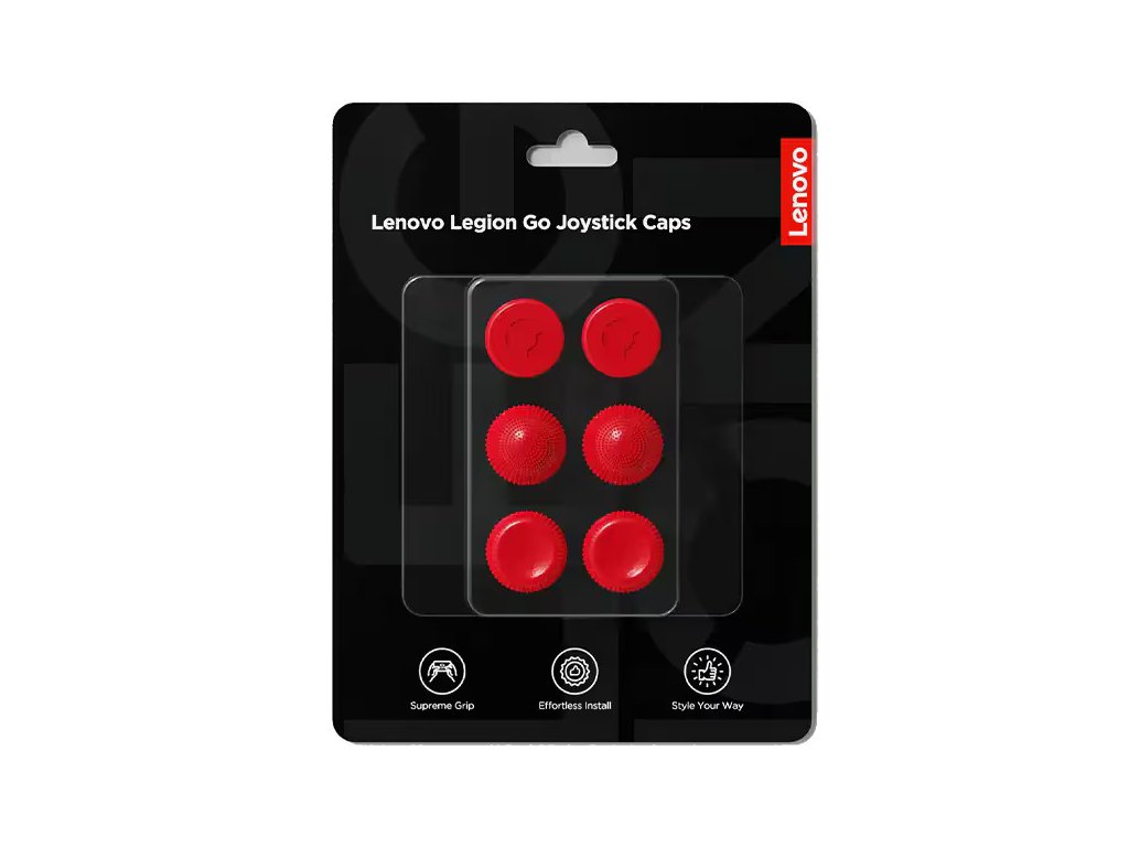 Lenovo Joystick Caps for Legion Go - Lenovo Red Typ příslušenství: Sada joystickových čepiček Určeno pro: Odnímatelné ovladače Legion Go Značka: Lenovo Barva: Lenovo Red Materiál: Silikon Požadavky na hardware: Kompatibilní s odnímatelnými ovladači Legion Go Typ balení: Maloobchodní balení Obsah balení: 2× konkávní čepičky, 2× sférické čepičky, 2× válcové čepičky, záruční leták Typ koncovek: Konkávní ×2, Sférické ×2, Válcové ×2 Rozměry koncovek (V x Š x H): Výška: Konkávní: 6.4 mm / Sférické: 9.6 mm / Válcové: 7.1 mm Délka: Konkávní: 18.1 mm / Sférické: 17.9 mm / Válcové: 17.4 mm Hloubka: Konkávní: 18.1 mm / Sférické: 17.9 mm / Válcové: 17.4 mm Hmotnost produktu: 6.72 g Hmotnost balení: 28.8 g Rozměry balení (D x Š x V): 105 × 140 × 16 mm Provozní teplota: 0–40 °C Provozní vlhkost: 20 % – 95 %