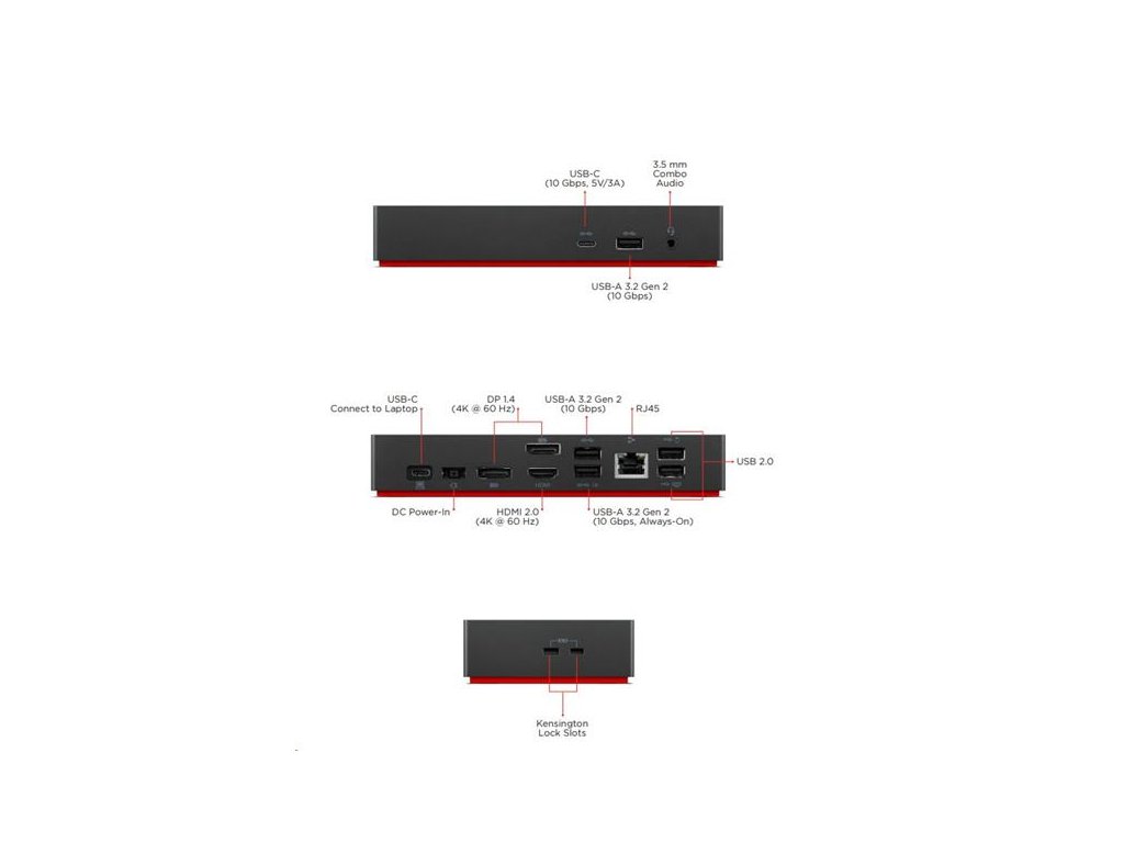 Lenovo ThinkPad USB-C Dock - PD100W (2x DP, 1x HDMI, RJ45, 1x USB-C, 5x USB) max. 3x LCD 40AY0135EU