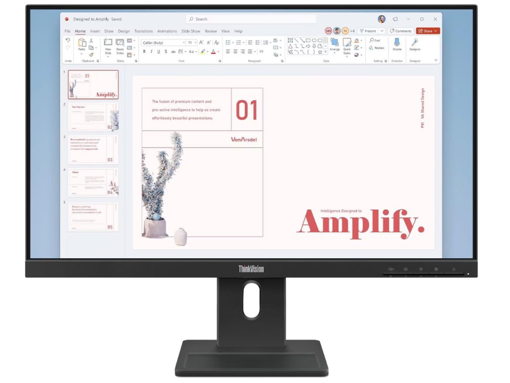 Lenovo ThinkVision E24-40 *IPS Displej *23.8'' *FullHD rozlišení Typ obrazovky: In-Plane Switching (IPS) Podsvícení: WLED Úhlopříčka [palce]: 23,8 Rozlišení: 1920x1080 Rozteč bodu [mm]: 0.2745 Obnovovací frekvence [Hz]: 100 Poměr stran: 16:9 Povrch displeje: Antireflexní Jas [cd/m2]: 250 Kontrast: 1300:1 Odezva [ms]: 4ms GtG (Extreme mode) / 6ms GtG (Typical mode) Pozorovací úhly (Horizontál/Vertikál): 178/178 Počet barev: 16.7 Million Reproduktory: 2Wx2 USB konektory: *Ne Video konektory: *1x HDMI® 1.4 *1x DP 1.2 *1x VGA Síťové konektory: *Ne Napájení: Integrované Spotřeba (typická / max.) [W]: 13W / 24W Montáž na zeď: VESA 100x100mm Naklápění monitoru: Naklápění, Otáčení, Pivot, Výškově nastavitelný Barva: Raven Black Rozměry (se stojanem, ŠxHxV mm): 539.8 x 178.6 x 343,4-498.4 mm Hmotnost [kg]: 4,5 Záruka: 3 roky Odkaz na stránky výrobce: https://psref.lenovo.com/Detail/ThinkVision_E24_40?M=64BAMAT1EU