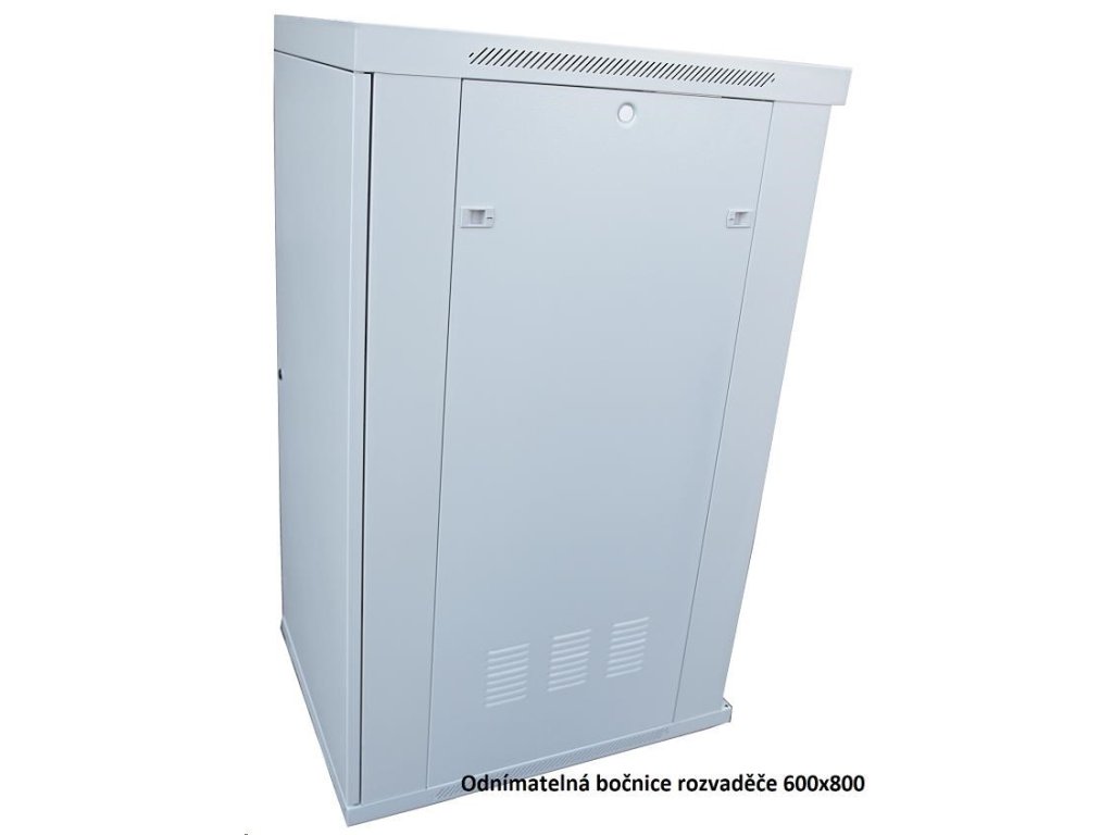 LEXI-Net 19" stojanový rozvaděč 27U 600x600 rozebiratelný, ventilační jednotka, termostat, kolečka, 600kg, sklo, šedý LS27U-60-60 Lexi-NET