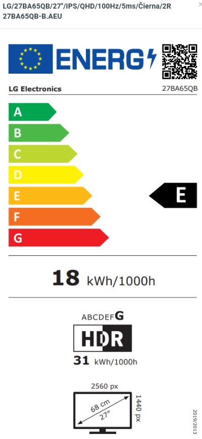27” QHD IPS Monitor s USB-C a s Daisy Chain Typ obrazovky: ,IPS Úhlopříčka [palce]: ,27 Rozlišení: ,2560 x 1440 Rozteč bodu [mm]: ,0.2331 x 0.2331 Obnovovací frekvence [Hz]: ,100 Poměr stran: ,16:9 Povrch displeje: ,Antireflexní Jas [cd/m2]: ,350 Kontrast: ,700:1 Odezva [ms]: ,5 Pozorovací úhly (Horizontál/Vertikál): ,178/178 Počet barev: ,16,7 Reproduktory: ,2x5W Konektory: , *1x HDMI 2.0 *2x DisplayPort 1.4 (1x out, 1x in) *1x USB (PD 65W) *1x USB 3.2 (Upstream) *4x USB 3.2 (Downstream) , Napájení: ,Integrovaný Spotřeba [W]: ,17,6 Stand By režim [W]: ,0,5 Třída energetické náročnosti: ,E Montáž na zeď: ,100x100mm Naklápění monitoru: , *Naklonění: ,5 ~ +21° *Výškově nastavitelné: 150mm *Otočení do stran: ,±45o Barva: ,Černá Rozměry (se stojanem, ŠxVxH mm): ,613.5 x 569.7 x 250 Rozměry (bez stojanu, ŠxVxH mm): ,613.5 x 569.7 x 63 Hmotnost [kg]: ,8,1 Obsah balení: , *Napájecí kabel *DisplayPort kabel Záruka: ,2 Roky Stránky výrobce: ,https://www.lg.com/global/business/monitors-pcs/monitors/lg-monitor/27ba65qb/