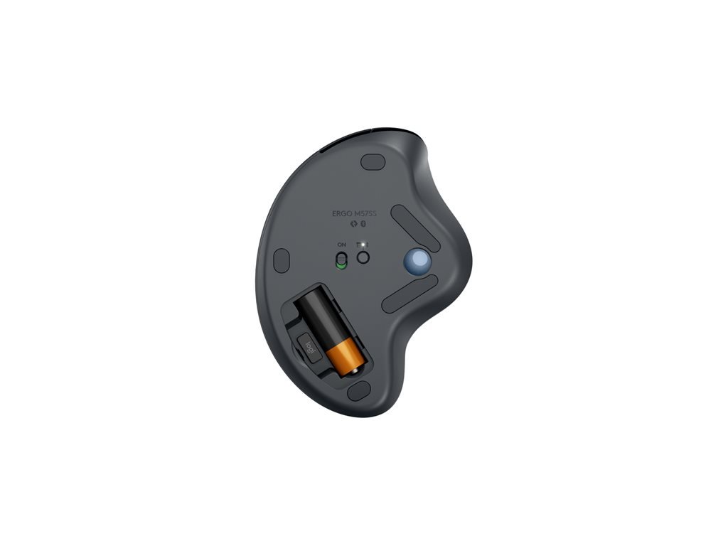 Trackball ERGO M575S môžete pripojiť pomocou technológie Bluetooth Low Energy alebo priloženého prijímača Logi Bolt USB. Životnosť batérie až 18 mesiacov (batéria AA je súčasťou balenia).
